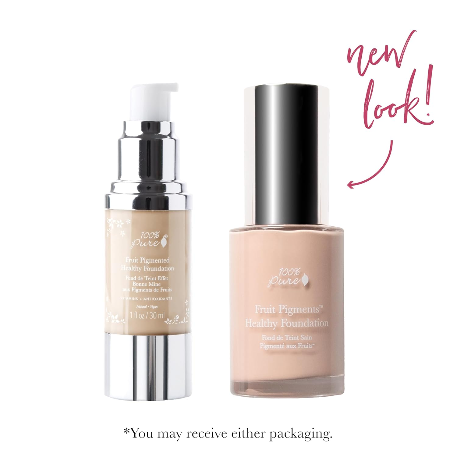 100% PURE Healthy Foundation Full Face Coverage Makeup, Liquid Matte Finish with Anti-Aging Benefits - Vegan - Gorgeous Fruit Pigmented Creme Color - (Fair with Warm Undertones) - 1 Fl Oz