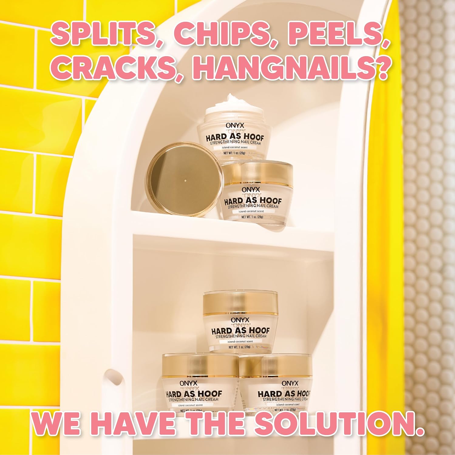 Onyx Professional Hard as Hoof Nail Strengthening Cream, Coconut Scent - Nail Growth and Conditioning Cuticle Cream Stops Splits, Chips, Cracks & Strengthens Nails, 1 oz