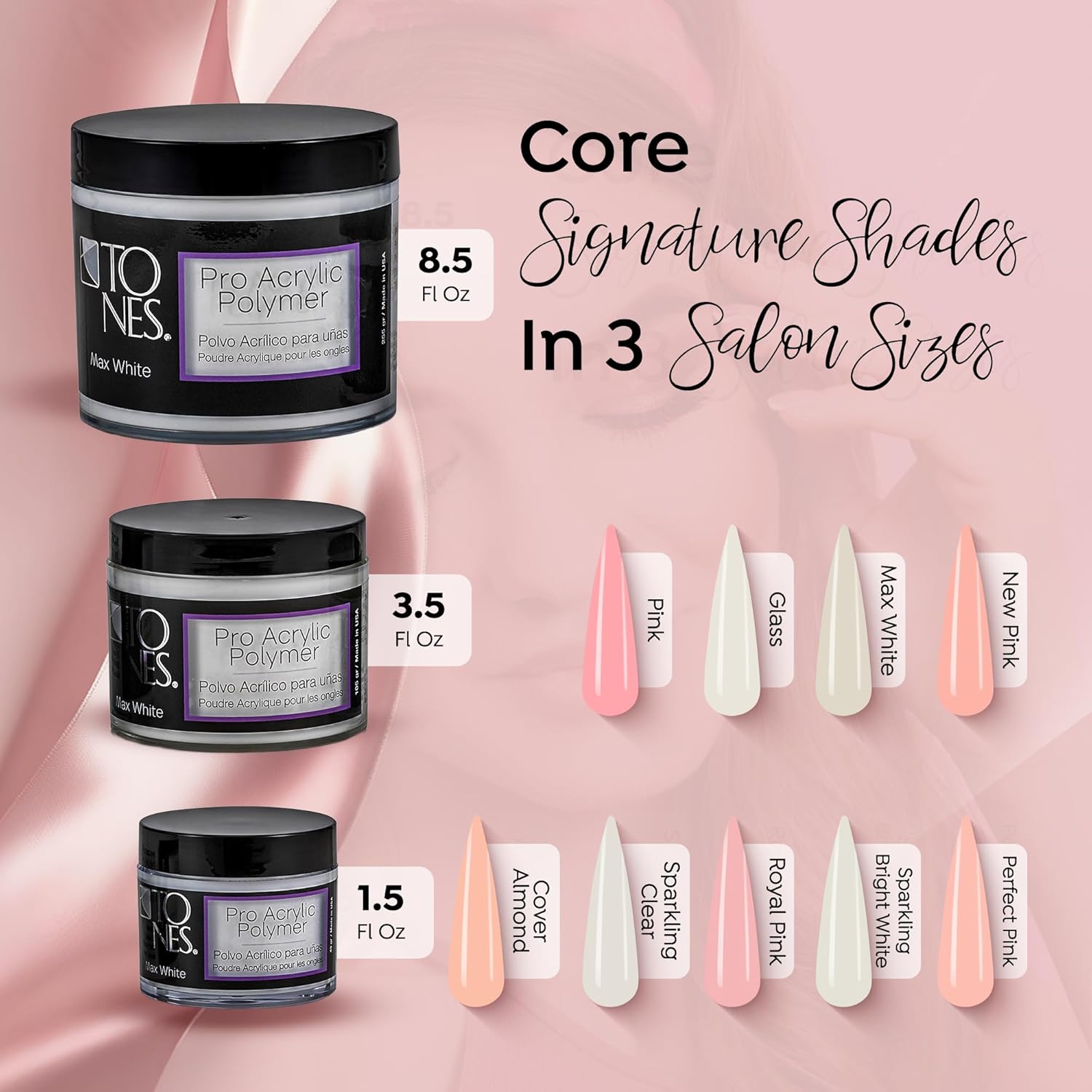 Tones Pro Acrylic Nail Powder, Max White (Creamy, Soft Off-White), (8.5 Fl Oz) - Long-Lasting & Non-Yellowing Polymer for Salon Quality Nail Extensions & 3D Art