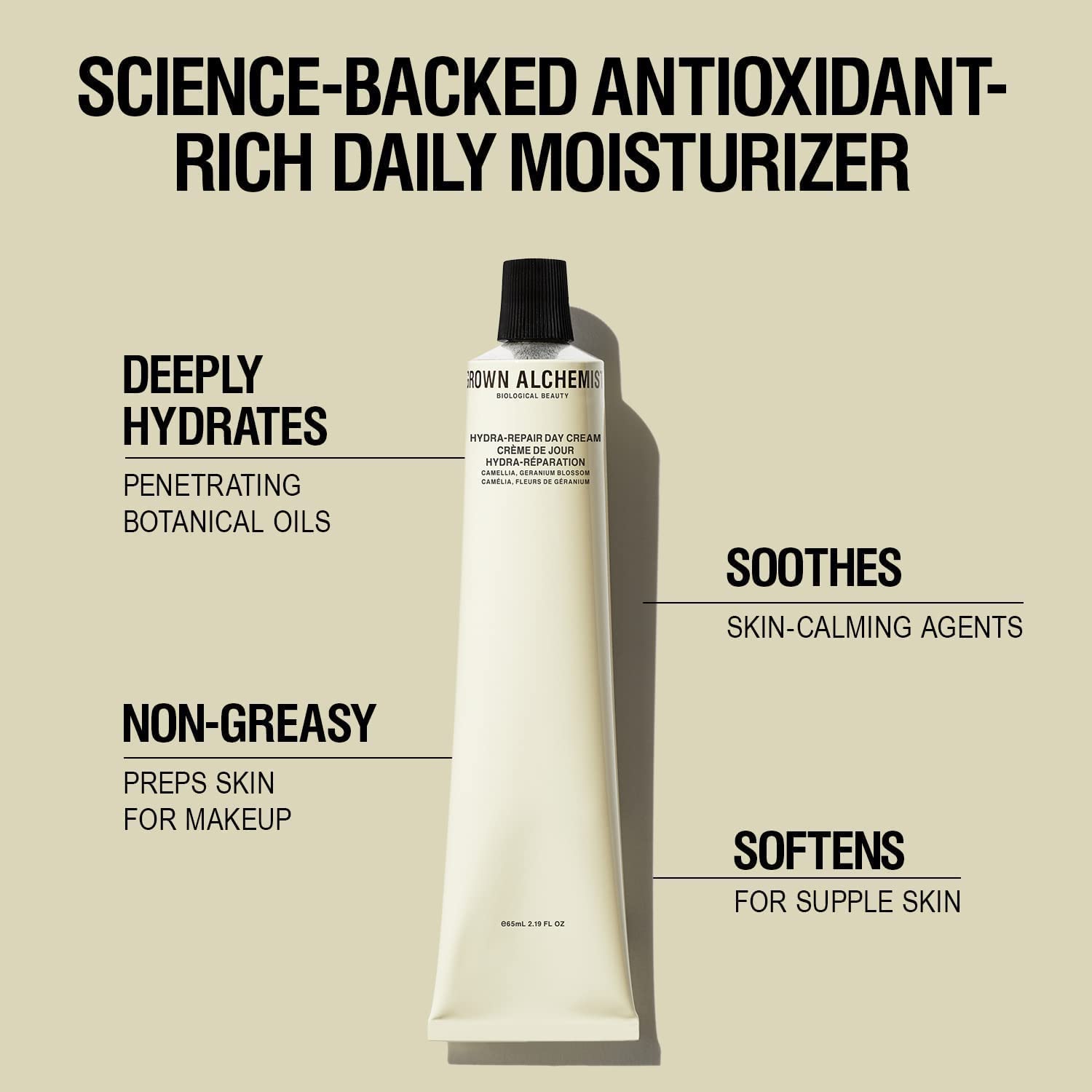 Grown Alchemist Hydra-Repair Day Cream with Camillia, Geranium Blossom & Vitamin E. Face Moisturizer to Prime and Hydrate Skin (65ml).