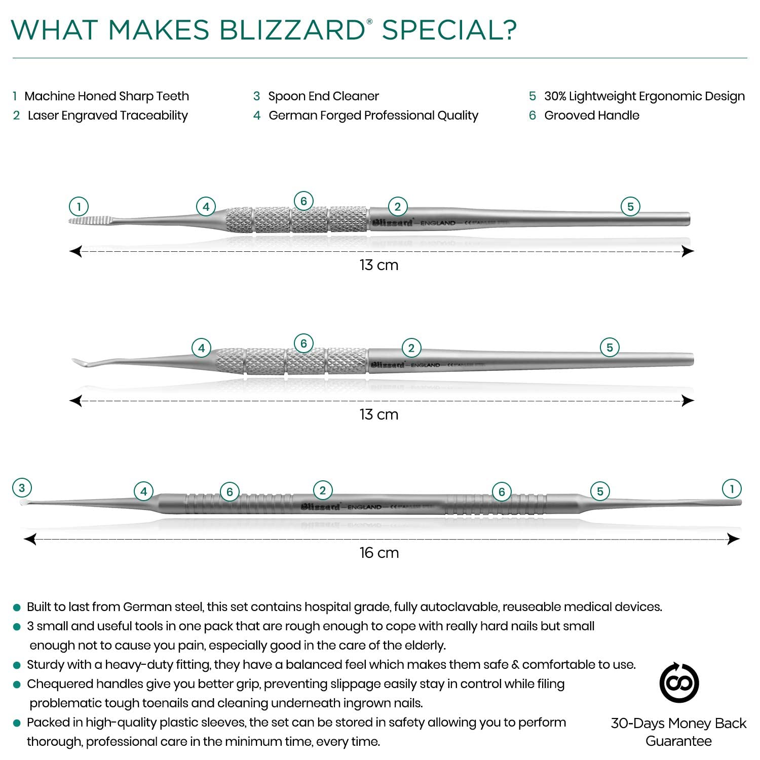 Blizzard Blacks Files and Probe Podiatry Tools German Forged - Blacks File Spoon and Swan Neck Probe Chiropodist Kit