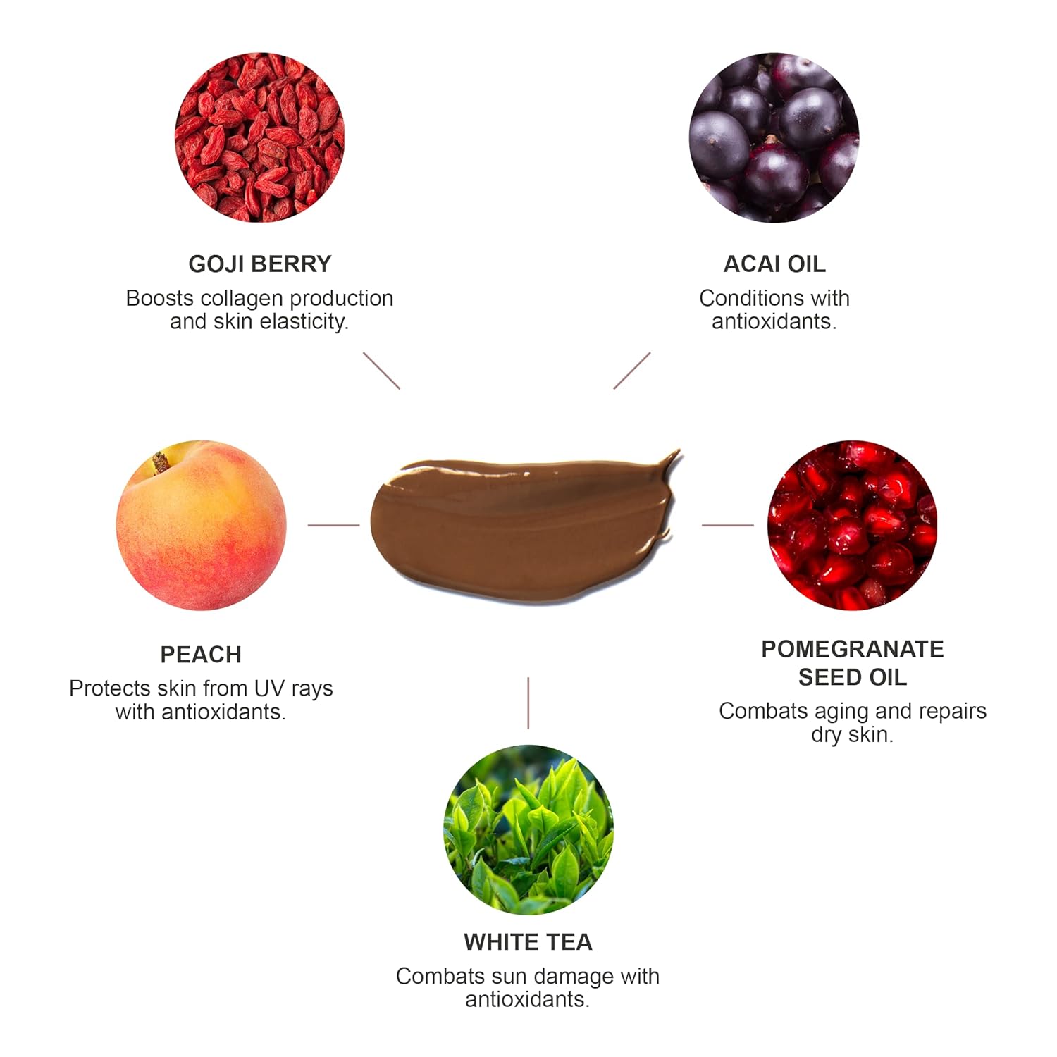 - MOTHER NATURE'S ANTI AGERS - A smooth, lightweight formula helps even out skin tone, perfect for a natural makeup look with the hydrating benefits of antioxidant-rich goji, acai, and pomegranate oils to help combat the appearance of pesky wrinkles.