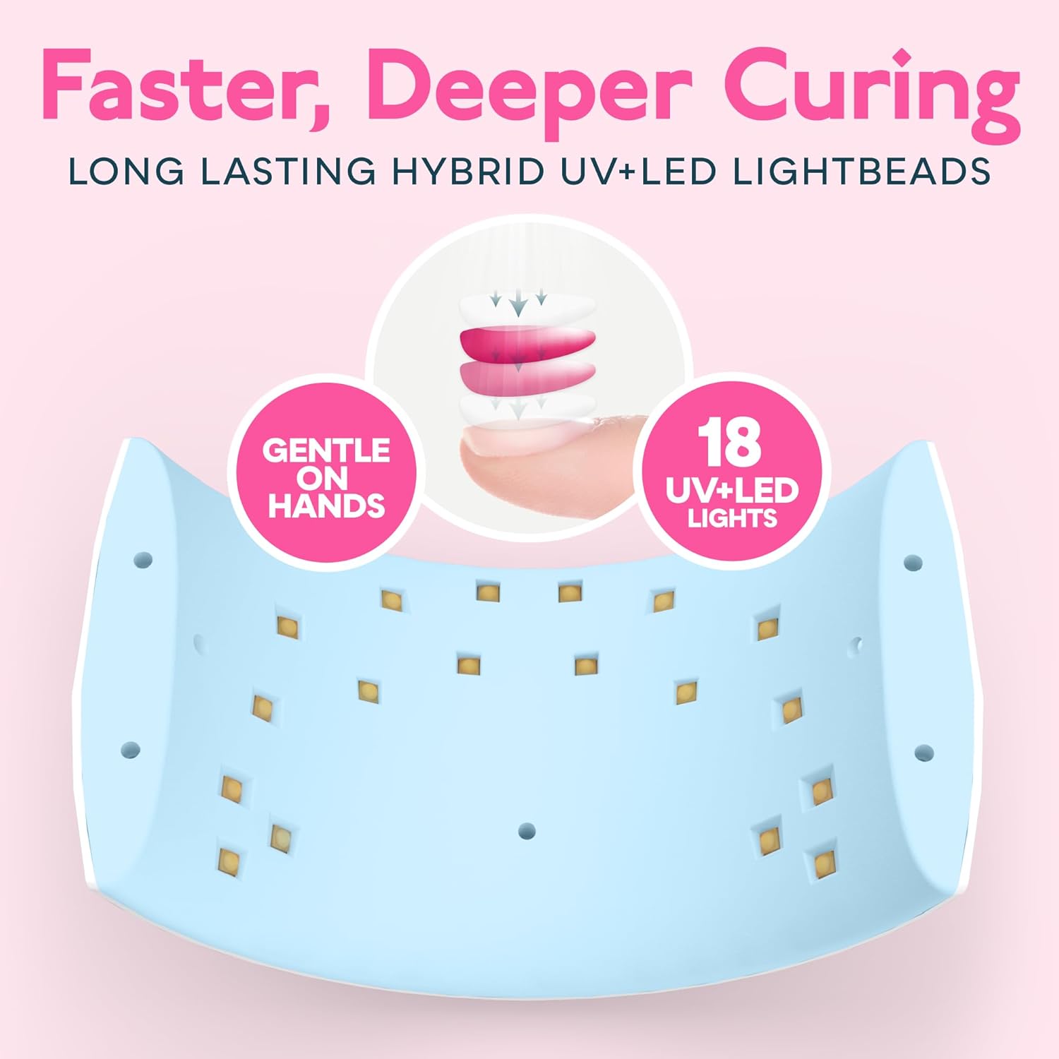 - Curing All Nail Gel Polishes: This uv light for nails fast cure all gel nail polishes, base coat, top coat, color gel, hard gels, builder, acrylic, sculpture gel, gem glue etc. (not for regular nail polish) No bottom plate, suit for curing toenails