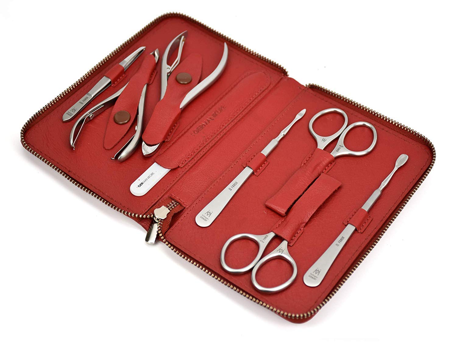 GERMANIKURE 8pc Manicure Set in Leather Case - FINOX Stainless steel tools handmade in Solingen Germany – Professional Nail and Cuticle Care