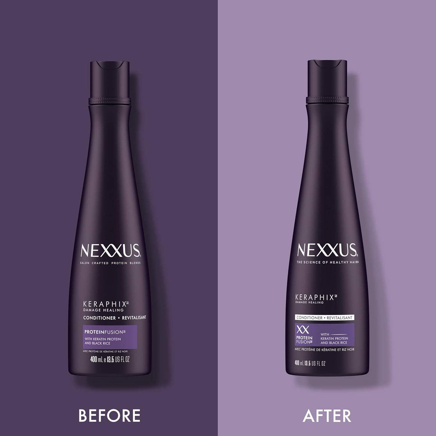 - KERATIN TREATMENT INFUSED WITH PROTEINFUSION: Inspired by Nexxus New York City salon, Nexxus conditioner with Keratin Protein and Black Rice is your new weapon to heal signs of damaged hair