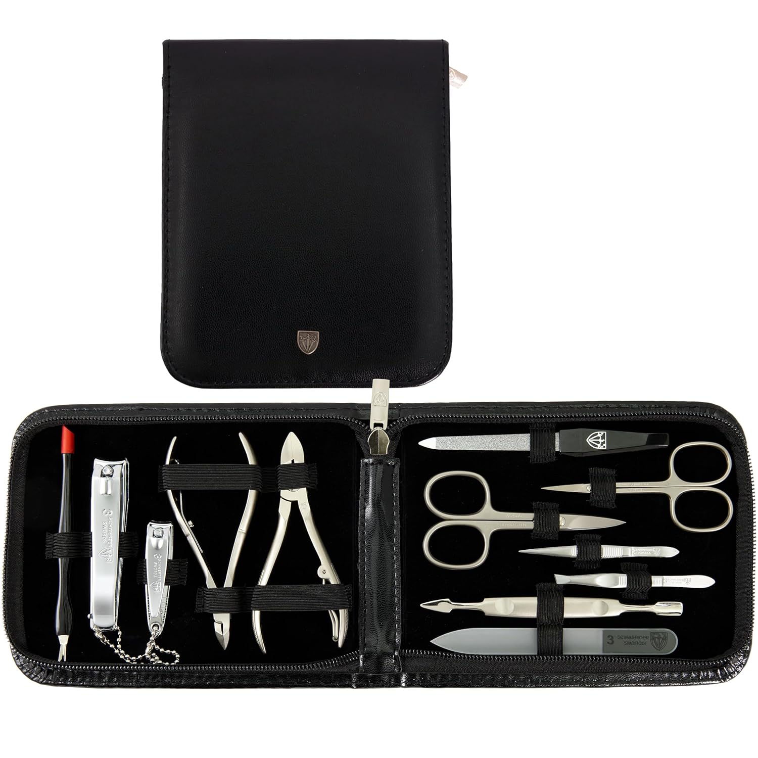 3 Swords Germany - brand quality 12 piece manicure pedicure grooming kit set for professional finger & toe nail care with black synthetic leather case - Made in Germany