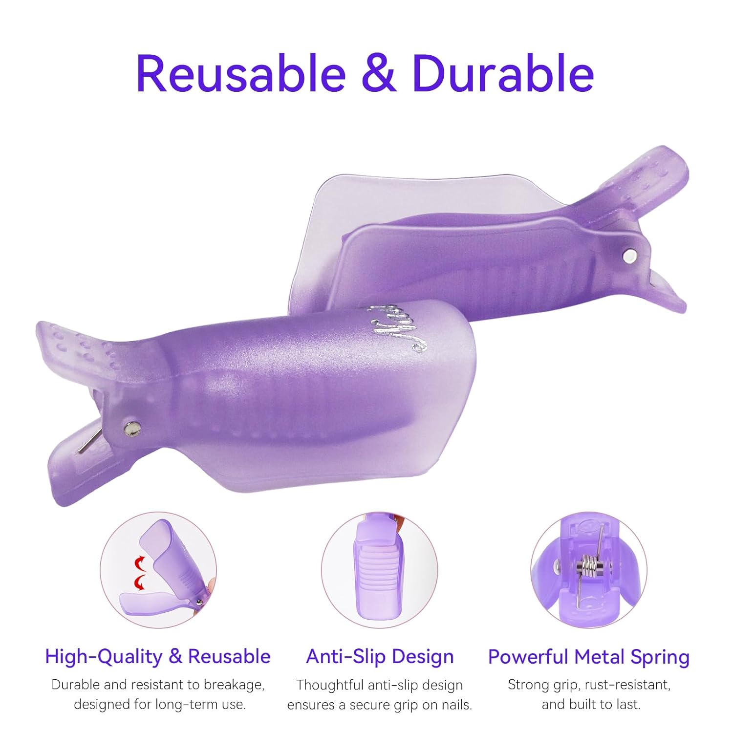 - 【Reusable Gel Nail Remover Clips for Fingers & Toes】Made from durable ABS plastic, the clips are designed for both fingernails and toenails. They fit snugly without pressure, ensuring a secure anti-slip grip during soaking and allowing for mess-free, repeatable use.