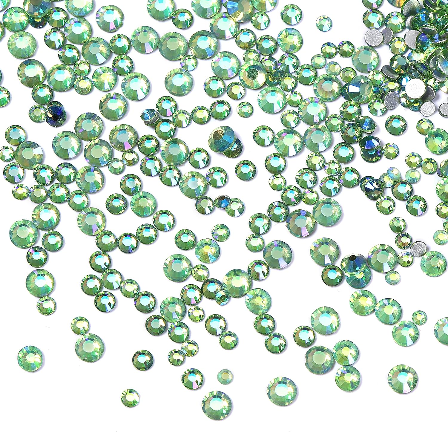 3456pcs Flatback Rhinestones Glass Charms Diamantes Gems Stones for Nail Art 6 Size ss4~ss12 Light Green AB