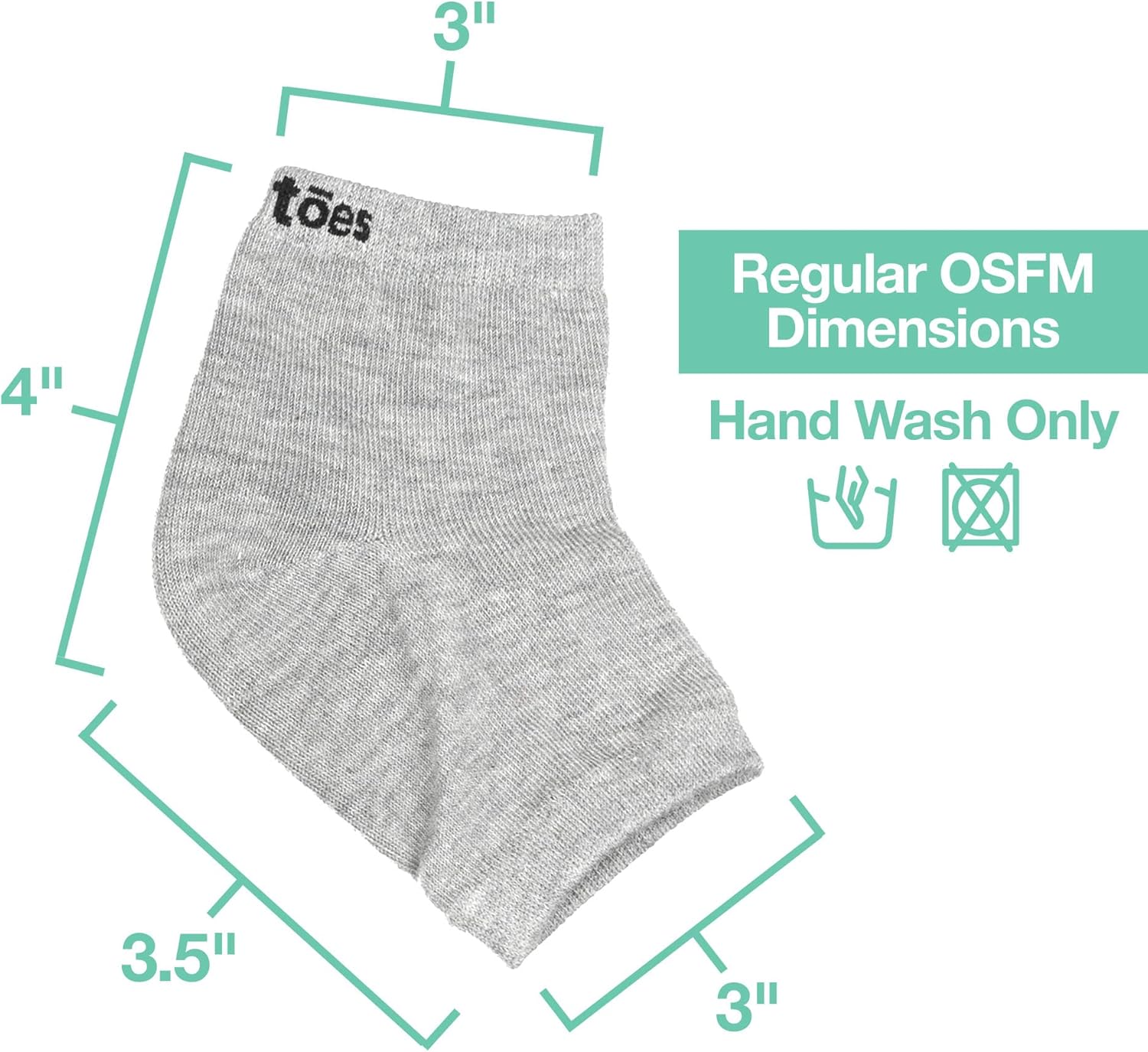 - Choose Your Size - Our Regular (OSFM) heel treatment socks are designed for an average foot width and shape. If you have a wider foot, fuller calves or swollen areas, choose our Wide Width version, which offers extra room for a more comfortable fit. When in doubt, opt for the wider size to avoid tightness. Rest comfortably while your heels soak in the moisturizing benefits.