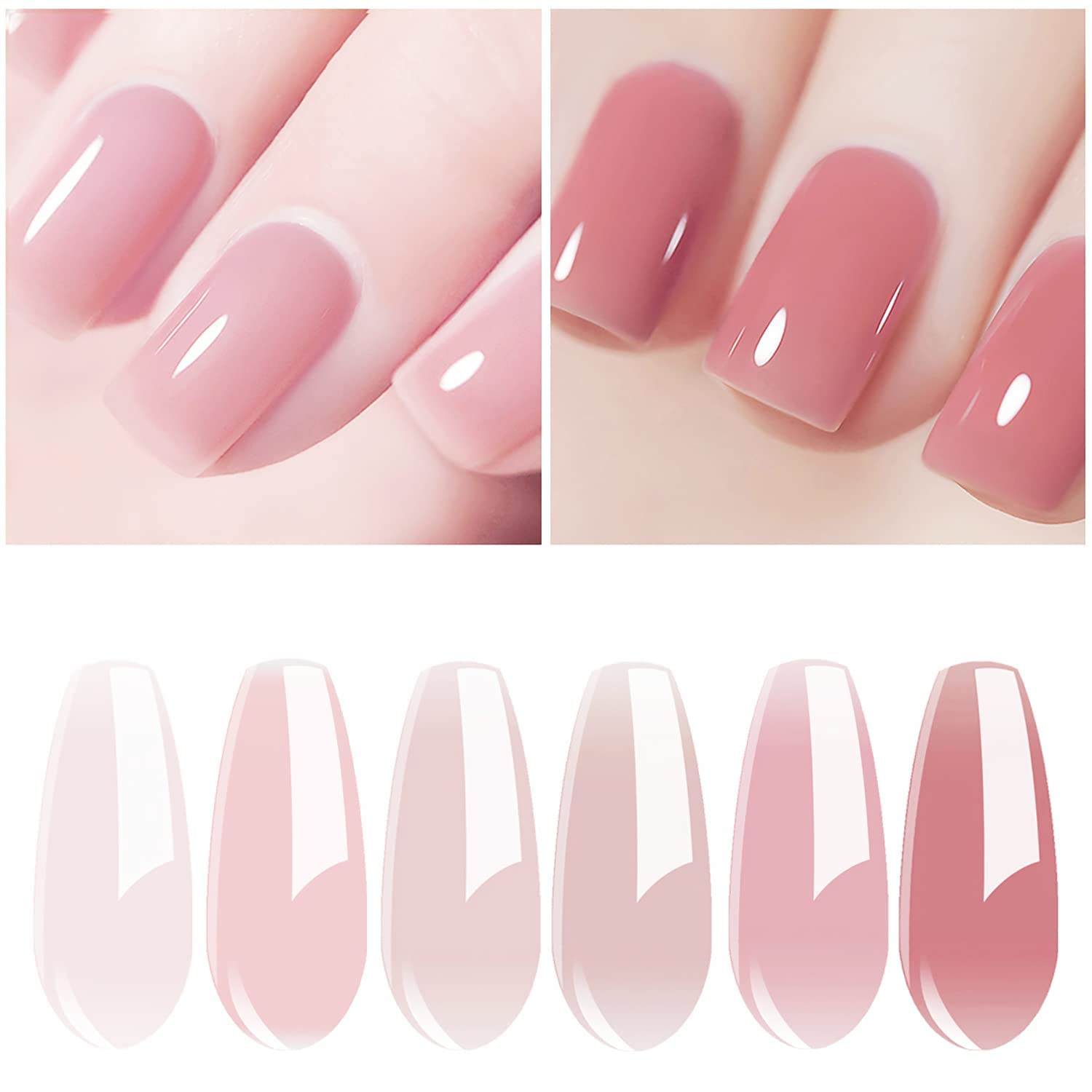 Vishine Gel Nail Polish Kit UV Light, 36W UV LED Nail Dryer Lamp, 6 Sheer Milky Pink Jelly Transparent Colors Base Top Coat Professional All-in-One Nail Art Manicure Tools
