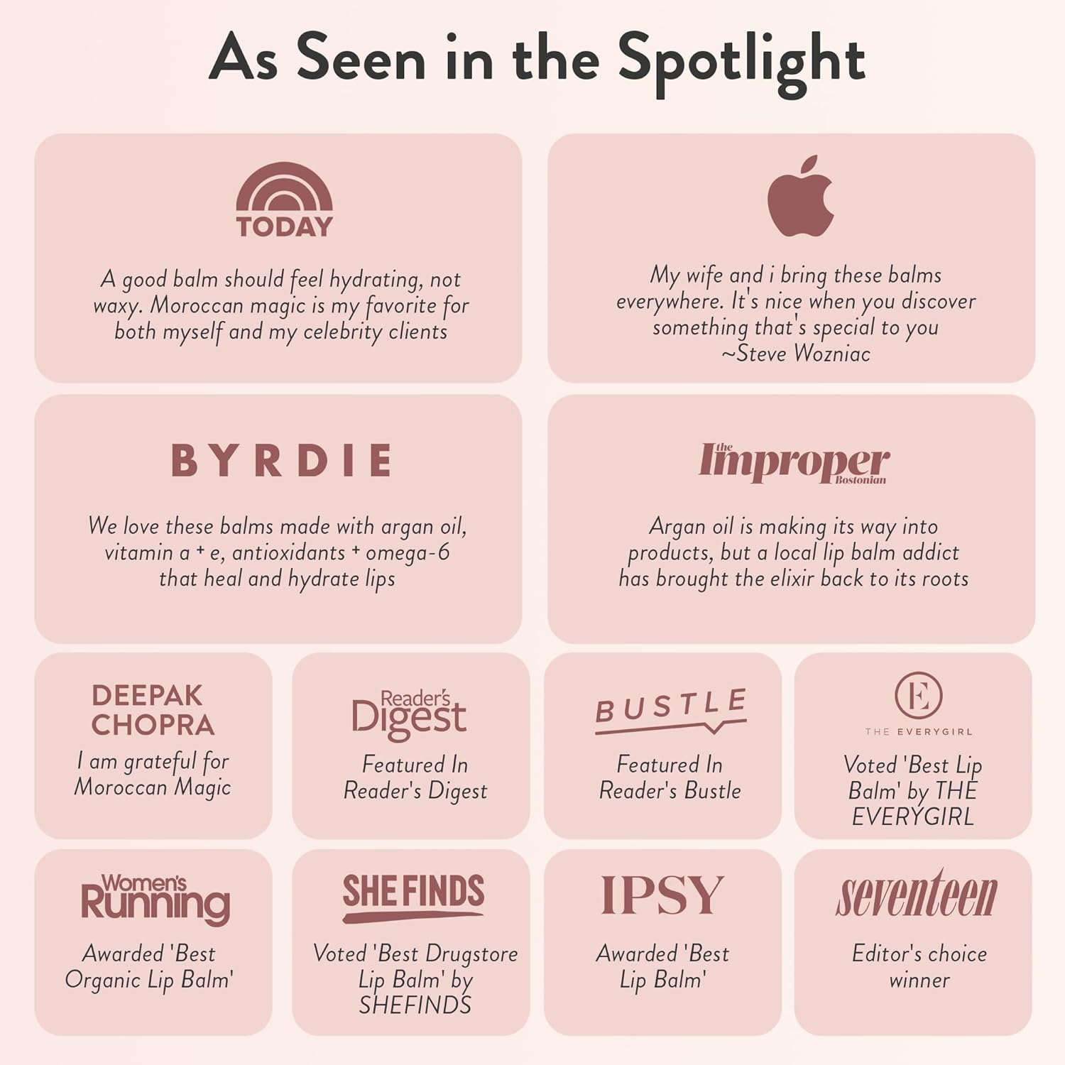 - MOROCCAN MAGIC: As a true lip balm lover, you are most likely (and understandably) very picky about which lip balms you use. Thatâs good, we are too! Thatâs why we have created what people are now calling âThe Smoothest Lip Balm Ever!â We are proud to offer a better balm, it's as simple as that. You deserve a higher quality everyday lip balm at an everyday price.