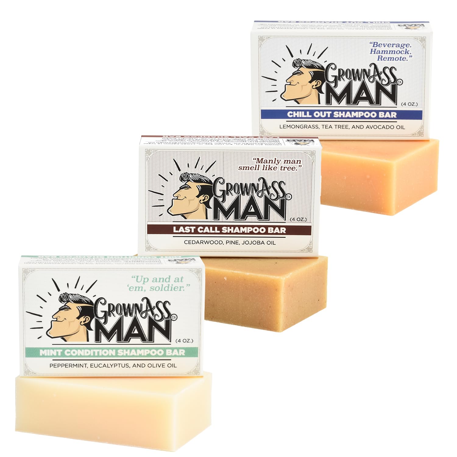- STRONGLY SCENTED WITH A MIGHTY NICE RICH LATHER: We want you to smell good all day, and, after all - you're a man and you might not even notice unless we made it strong. The rich lather makes sure that the fine ingredients we build into every Grown Ass Man Co., Shampoo bars reach all of your hairs and your scalp. Lather has a purpose? Oh yes. Yes it does.