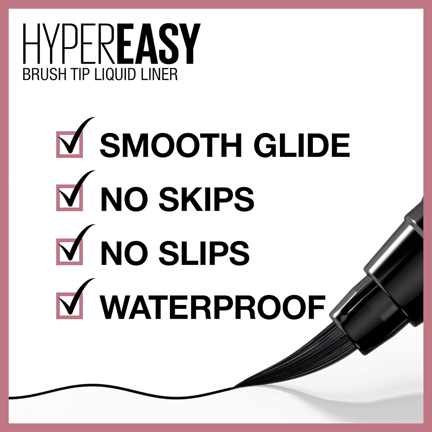Maybelline Hyper Easy Liquid Pen No-Skip Eyeliner, Satin Finish, Waterproof Formula, Pitch Black, 0.018 Fl Oz