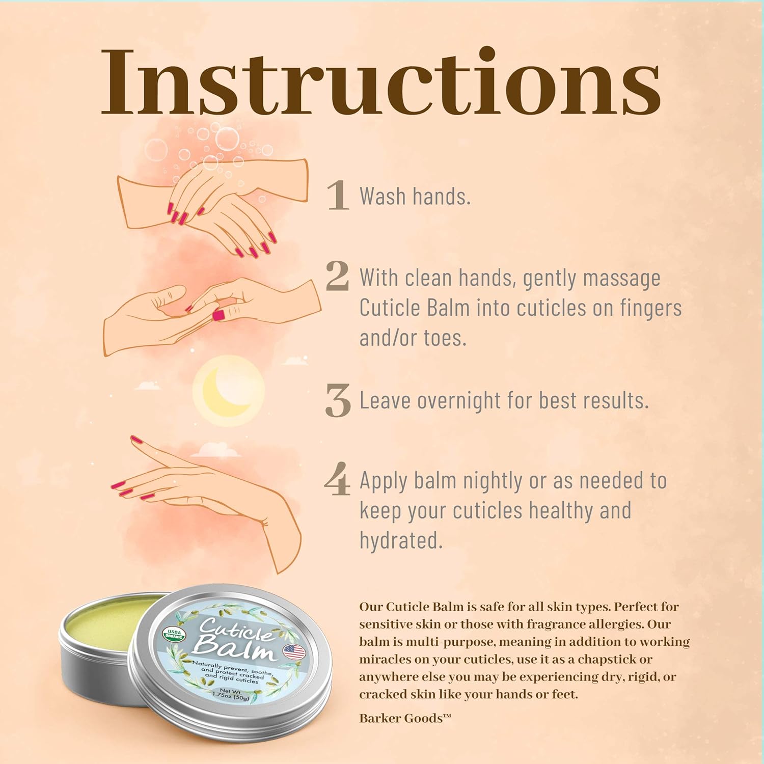 Organic Cuticle Balm - Natural, Made in USA (1.75oz Large Size) USDA Certified Cuticle & Nail Salve Oil to Moisturize, Protect, Heal Cracked & Rigid Skin