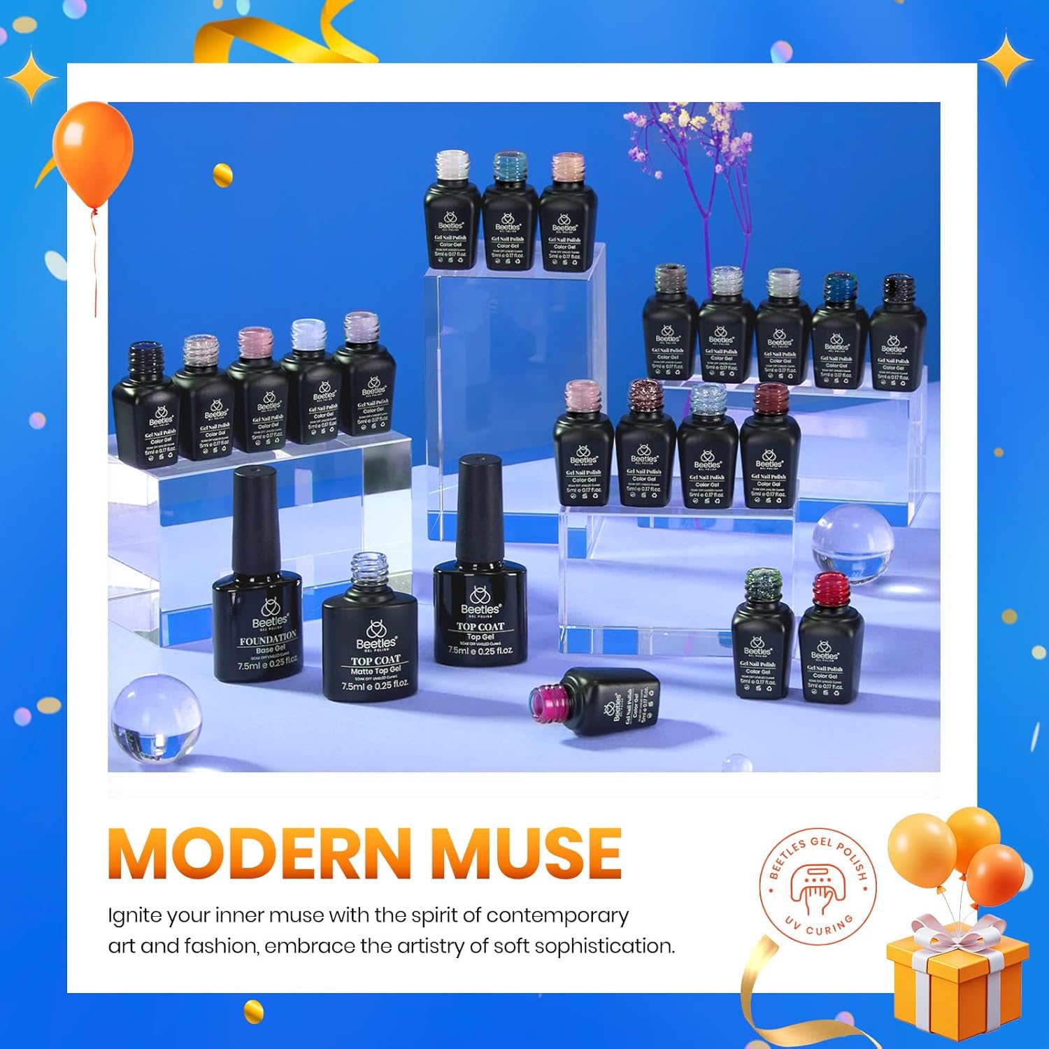 beetles Gel Polish Kit, Nude Gray Pink Blue Burgundy Glitter Gel Polish Set Modern Muse Collection with 3Pcs Base Matte Glossy Top Coat Soak off Uv Gel for Women