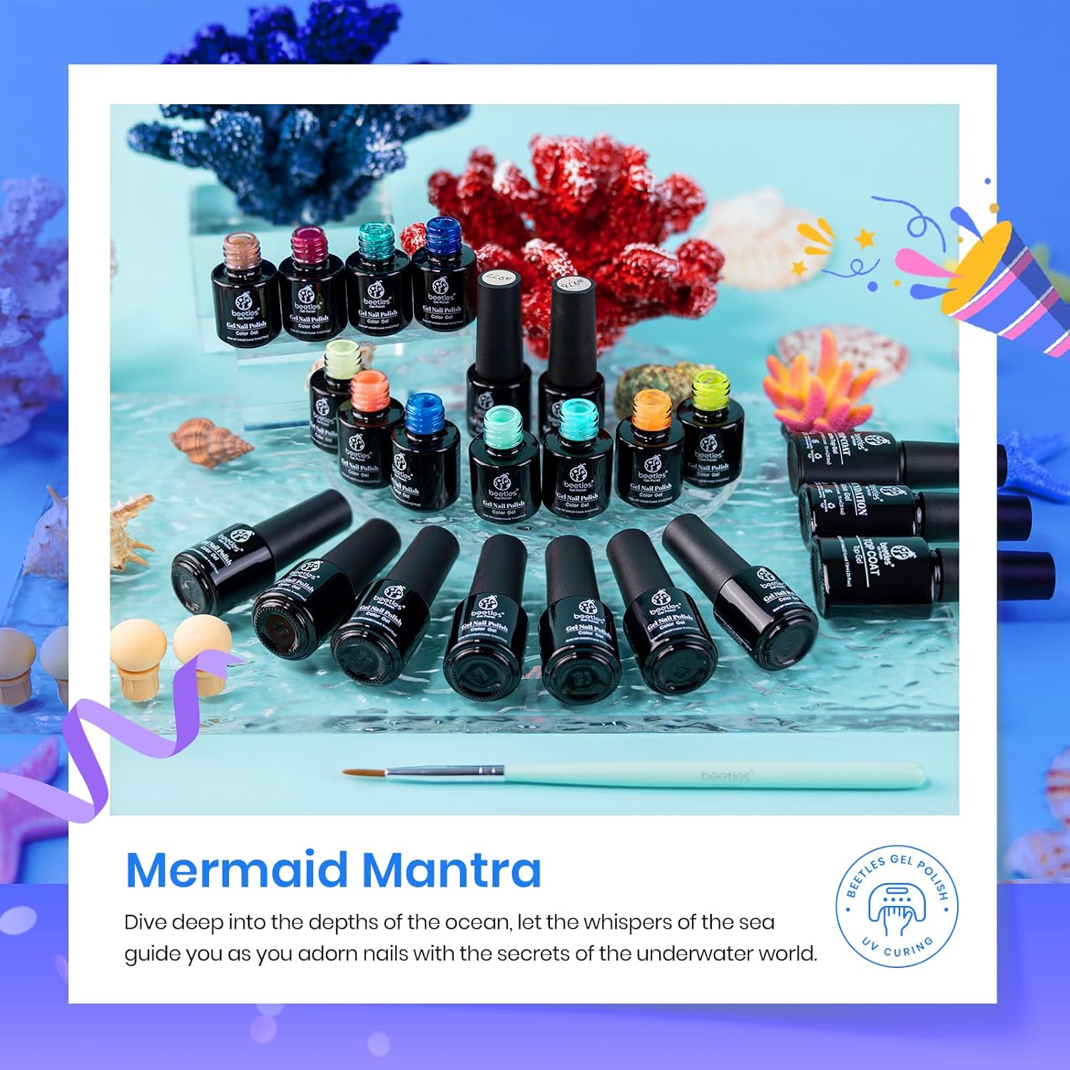 - What You Get: Beetles mermaid nail color trends 2025, 20pcs Mini Gel Polish Colors (5ml/0.17fl.oz each bottle) + 3pcs No Wipe Base and Glossy and Matte Top Coat (7.5ml/0.25fl.oz each bottle). Mermaid Mantra is a full range of every shade for oceanic themes. It is a good choice for gift for girls women! Color Numbers are: c015-e600-e601-e602-e603-e642-850-851-852-854-855-856-858-860-862-863-864-865-866-867.