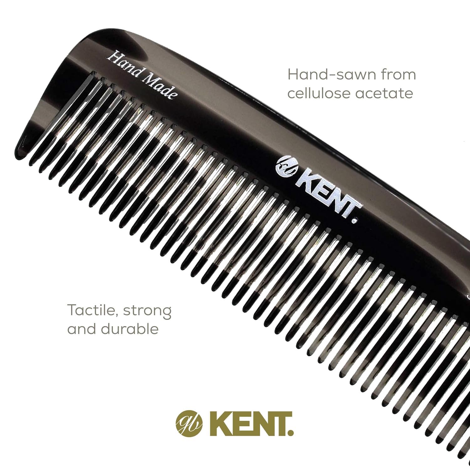 - Handmade from a large sheets of cellulose acetate rather than being molded. This material is tactile, flexible and strong, a non-petroleum based derived from plants that has been found to create less static in hair, and ensures a smooth surface