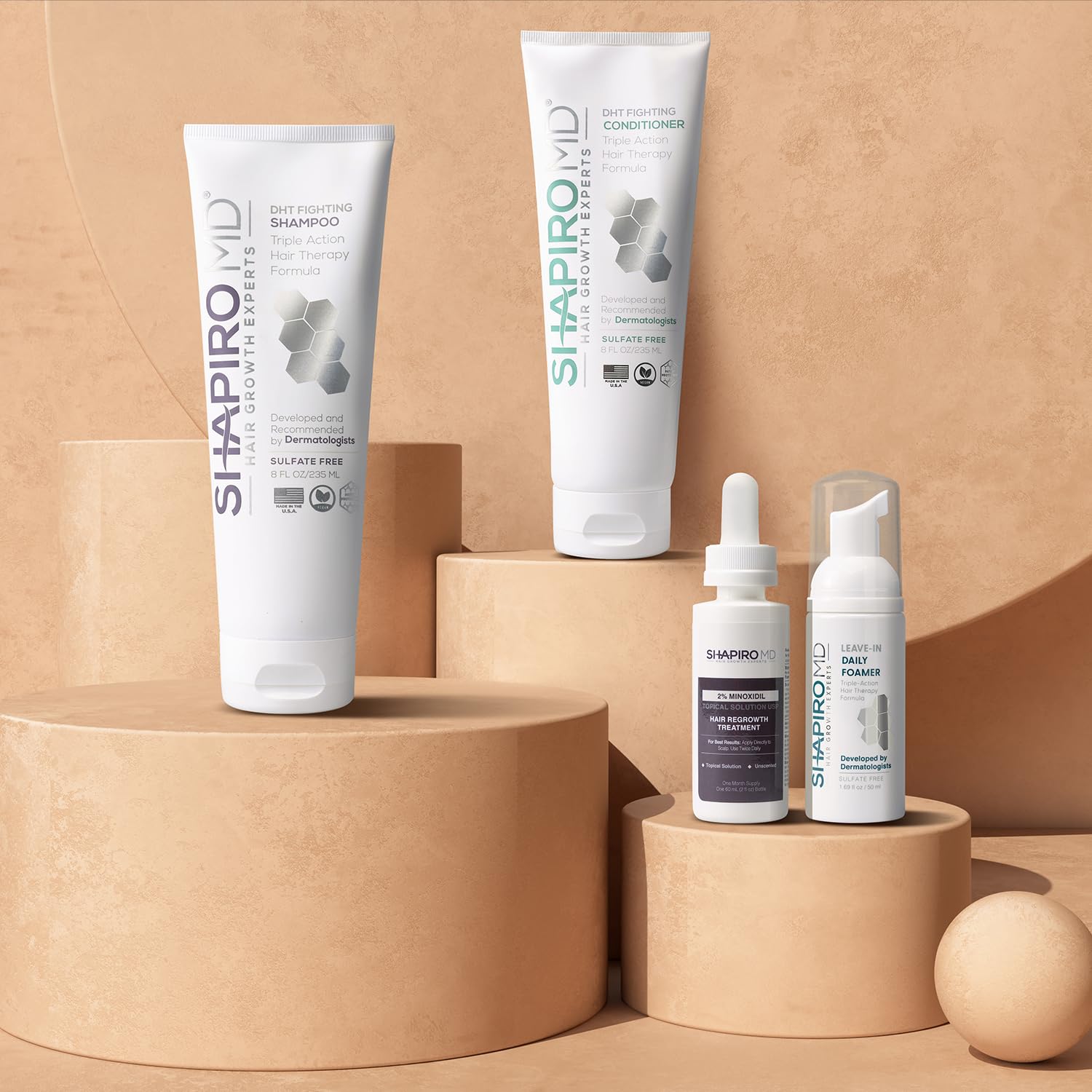 Shapiro MD Hair Growth Experts Women's Regrowth Kit Plus: Shampoo, Conditioner, 2% Minoxidil, Leave-In Foamer. Anti Hair Loss and Thinning Hair Solution for Women, 1 Month