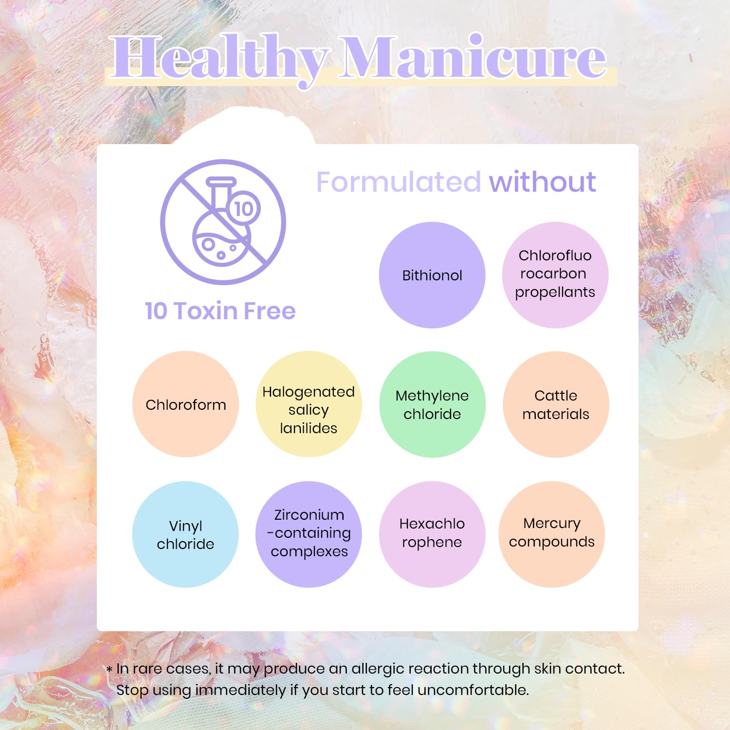 - Long-Lasting Formula: With proper application using a base coat and top coat, free from 10 harmful chemicals making it can last for up to 28 days while maintaining a perfect shine.