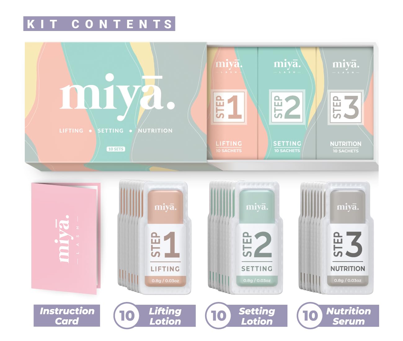 - đ CONTAINS 10 SETS OF LOTIONS â Loved using our lash lift & brow lamination kit and want to buy more lifting lotion refills? Weâve got your back! Box contains 10 x Lifting Lotion, 10 x Setting Lotion, 10 x Nutrition â enough for at least 10 treatments! Our fast acting lotions are packed with nourishing ingredients. Enjoy long lasting fabulous results while your natural lashes & brows grow nice & strong. All lotions come in sterile single use sachets for better hygiene and to preserve freshness.