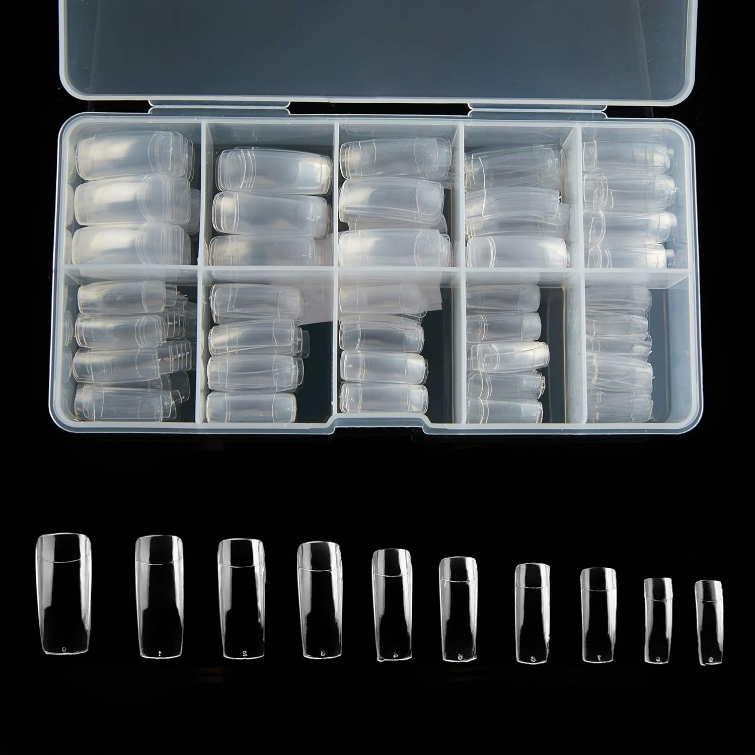Half Cover Acrylic False Nail Tips, 500PCS Fake Nail Shape Artificial False Nails Tips 10 Sizes with Case for Nail Art Salons and Home DIY (Clear)