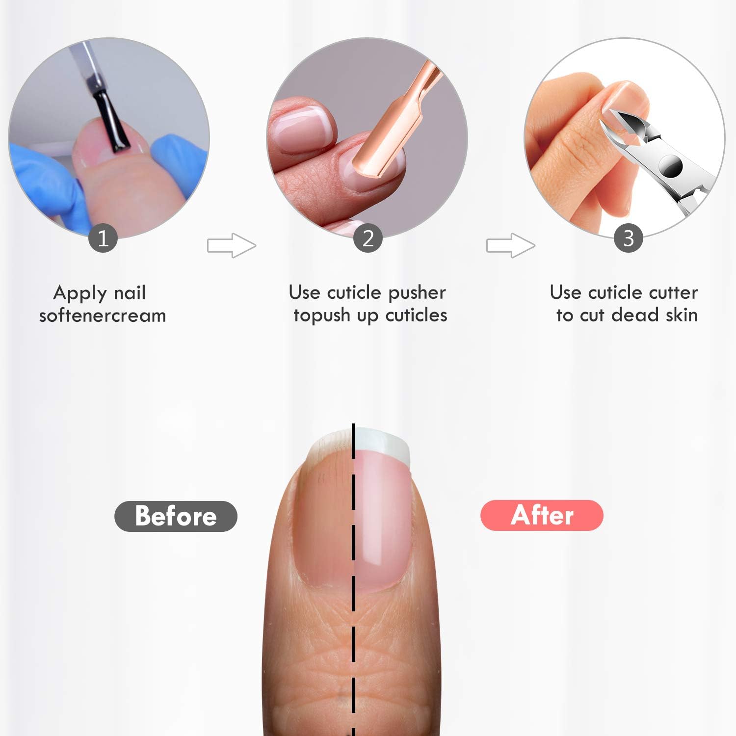 - Ergonomic Non-slip Handle Design -- Our professional cuticle remover tools set is designed with an ergonomic non-slip handle, providing you with a comfortable hand feeling, you can remover the cuticles more effectively. In addition, the rose gold color makes it a beautiful set of manicure artwork.