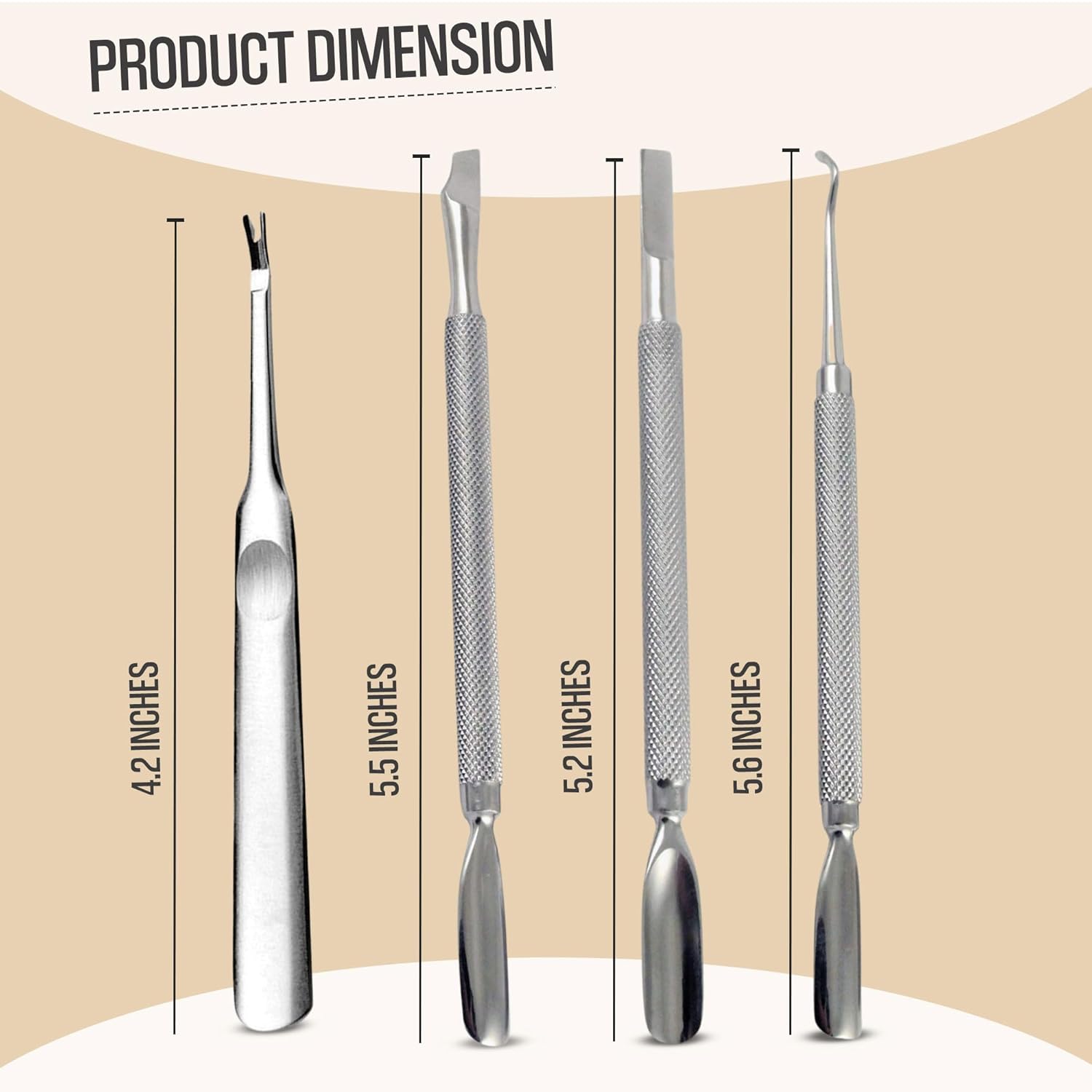- ✔4 Pack Stainless Steel Nail Care Tools Set - Spoon Shaped designs will be convenient for you to use for different needs and situations, both adults and children, with these amazing tools, you can easily cut trim every corner of cuticles to remove all the dirty easily & without any pain or discomfort. Cuticle pusher dual sided for pedicure toes fingernails in case cuticle pusher kit multi pack cuticle pusher tool with scrapper no rust toe triangle two ends cuticle pusher with grit end hook scoop pointy end cutter bulk flat head nail pusher tools. Nail cleaner scraper metal cuticle pusher.