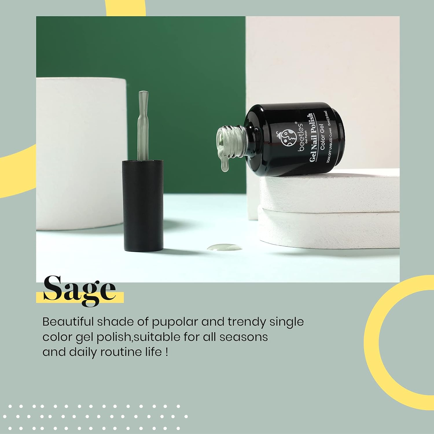 - SAGE GREEN GEL NAIL POLISH: 1pcs*15ml gel nail polish with with perfect shine. ïŒPLEASE NOTE: We strive to make our digital color swatches as accurate as possible to the actual product color but due to different monitor settings and electronic devices colors may differ slightly.ïŒ Color Number: a802