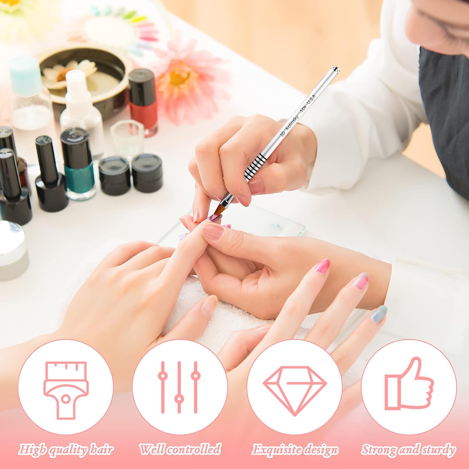 Patelai 3 Pcs Kolinsky 3D Nail Art Brush Set for Acrylic Powder Sculpture Nail Art Brush Size 6/8/10 with silver Metal Nonslip Grip Handle for Acrylic Powder Application