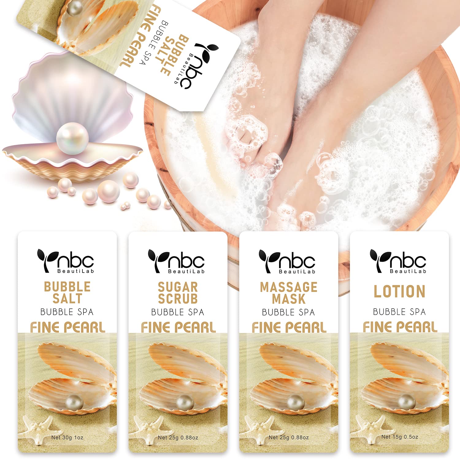 Pedicure Kit Foot Soak Set: Bubble Salt, Sugar Scrub, Massage Mask, Massage Lotion in a Box, 4 Step Foot Spa Kit for Dry Feet,Tired Feet(1 Set Pearl )