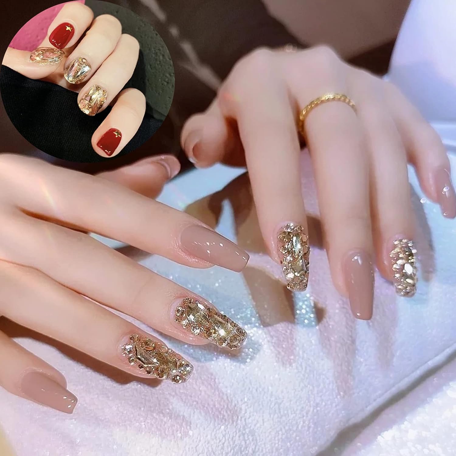 - đăChampagne Rhinestones for NailsăïŒThe nail crystal kit includes 2500 round flat rhinestones of 8 kinds and 600 champagne special-shaped diamonds of 12 kinds in a transparent storage box, 1pcs nail rhinestones pen and 1pcs tweezers. Our 3D nail art rhinestones are available in different popular styles, which will add brilliance and charm to your craftsmanship and make your nails more dazzling and charming.