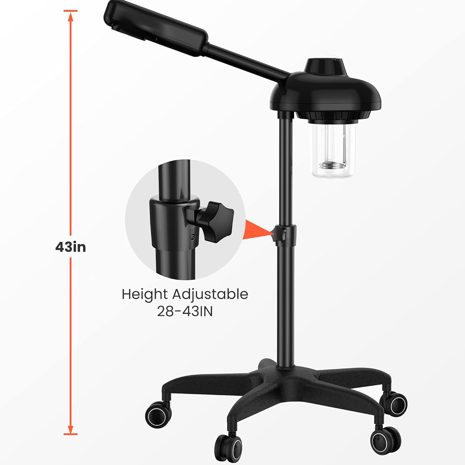 TASALON Facial Steamer on Wheels - Face Steamer for Professional Skin Rejuvenation, Facial Steamer Kit for Home, Spa, Beauty Clinic - Warm Mist, Ozone Face Humidifier - Pore Opener and Skin Cleanser