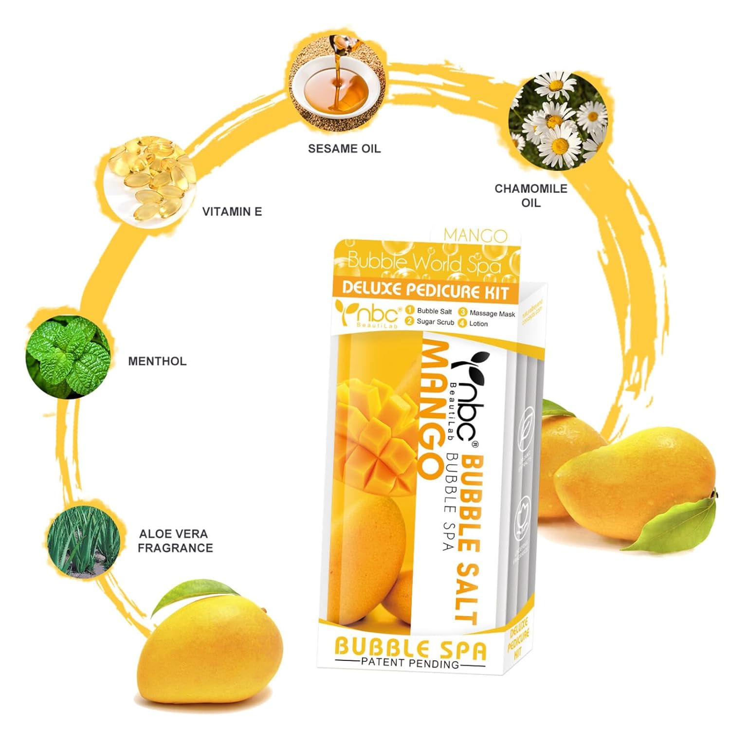 Pedicure Kit Foot Soak Set: Bubble Salt, Sugar Scrub, Massage Mask, Massage Lotion in a Box, 4 Step Foot Spa Kit for Dry Feet,Tired Feet (1 Set Mango)