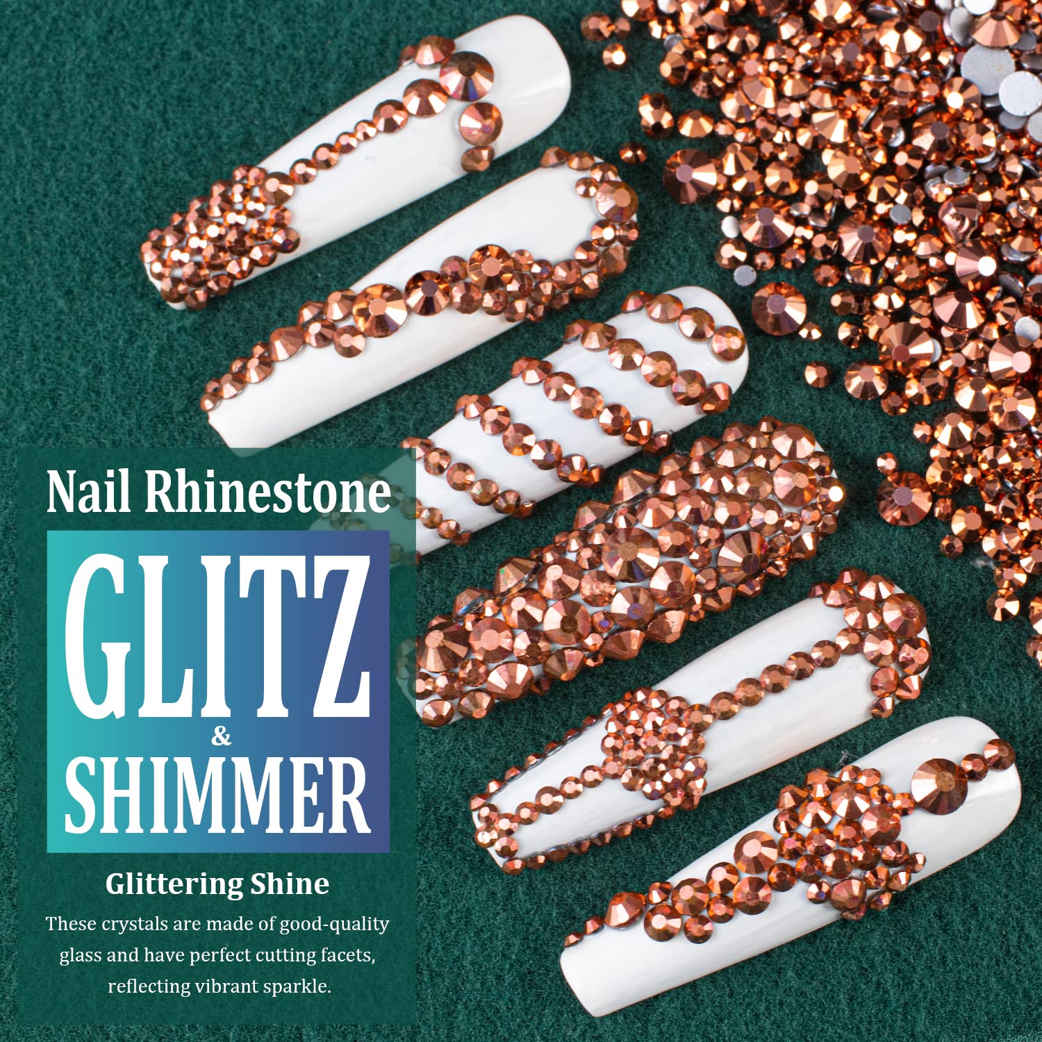 - ❤WHAT YOU WILL RECEIVE -- 1 Box of 6 Sizes Rose Gold Round Glass Nail Crystal Rhinestones Beads (Totally About 1720 PCS); 1 PCS Rhinestone Picker Pencil; 1 PCS Tweezer. The Well Equipped Rhinestone Set Is Suitable for Both Professional Nail Technician and Inexperienced Starter for Nail Art.