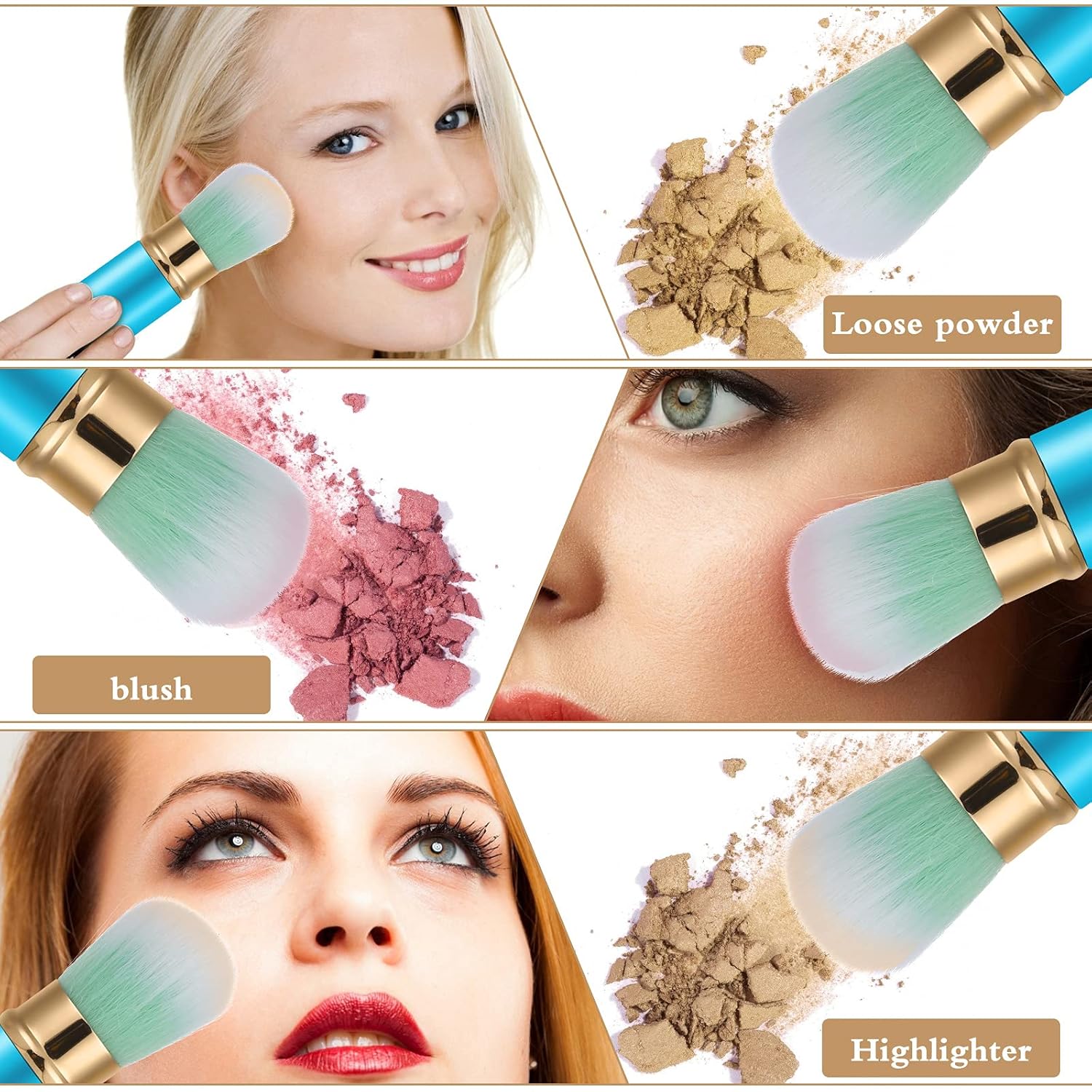 - ăStylish & Easy to Cleană The travel powder blush brush comes with recycled aluminum, increase the longevity of your face brush. Clean regularly with makeup brushes shampoo to lengthen brush health and prevent excessive shedding.