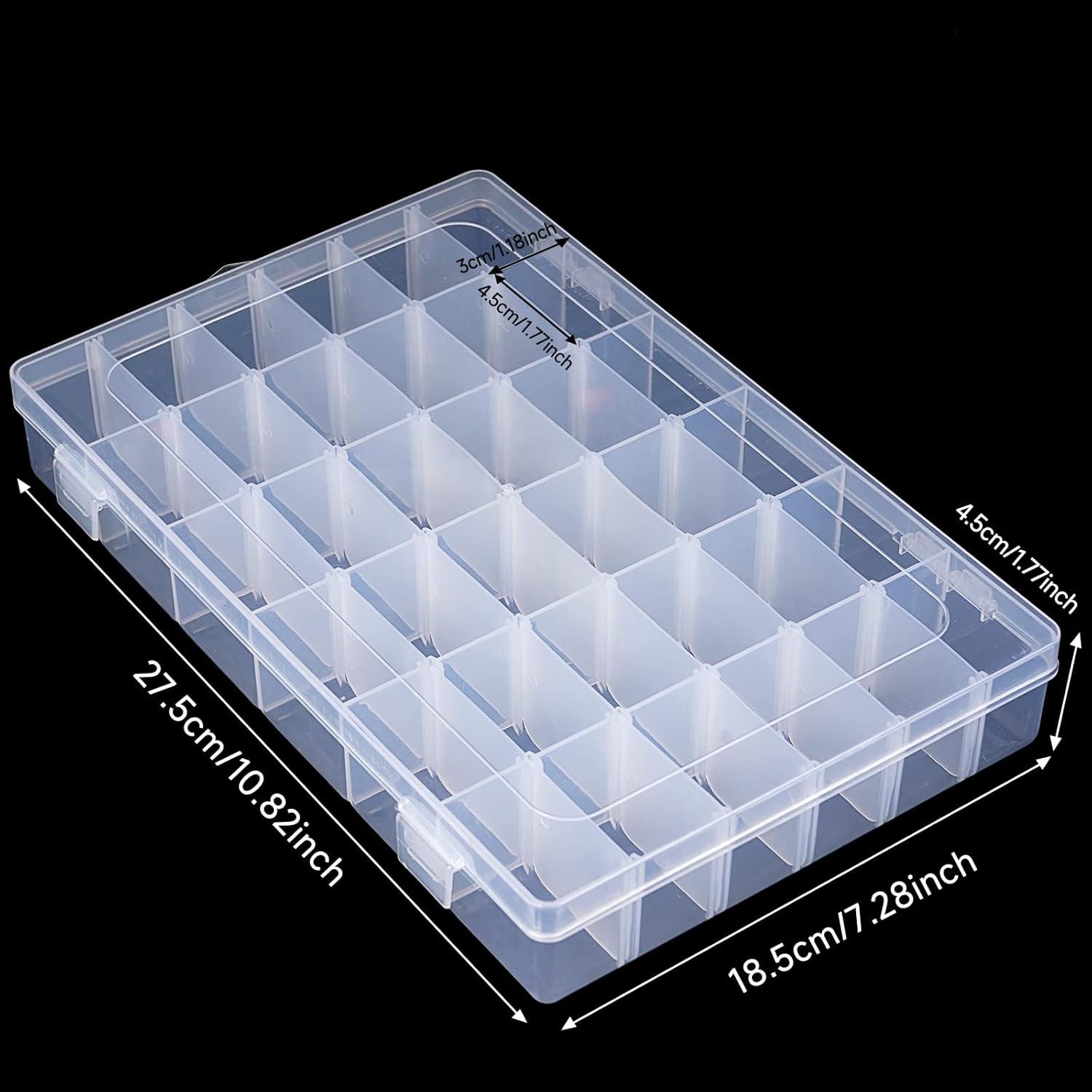 - LAGE SIZE: Tackle Box Organizer with Lid External Size: 10.5*6.7*1.57 inches. Each compartment Size: 1.77*1.2*1.57 inches.
