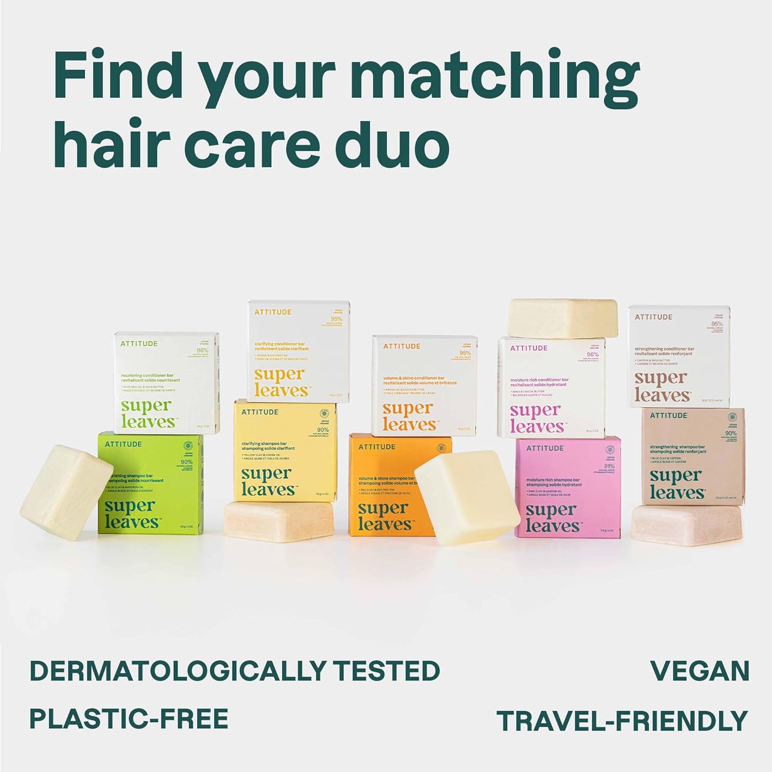 ATTITUDE Volume & Shine Shampoo Bar, Natural Origin, for Thin and Flat Hair, Soy Protein & Red Clay, EWG Verified & Clean Ingredients, Vegan, Orange Blossom & Eucalyptus, 4 Oz