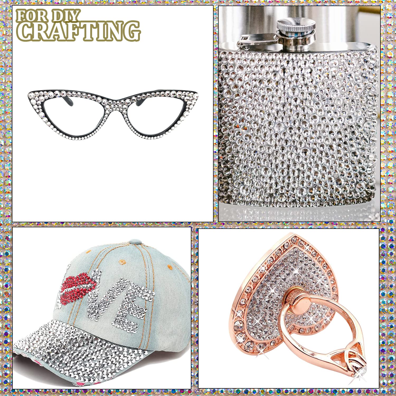 - ❤WIDE APPLICATION --The Nail Rhinestones Are Perfect for Creating 3D Nail Art or Decorating Jewelry, Makeup, Body Art, DIY Crafts, Wedding Dress or Shoes, Cell Phone Cases, Glasses, Greeting Cards, Bags, Guitars, Scrapbooks etc.