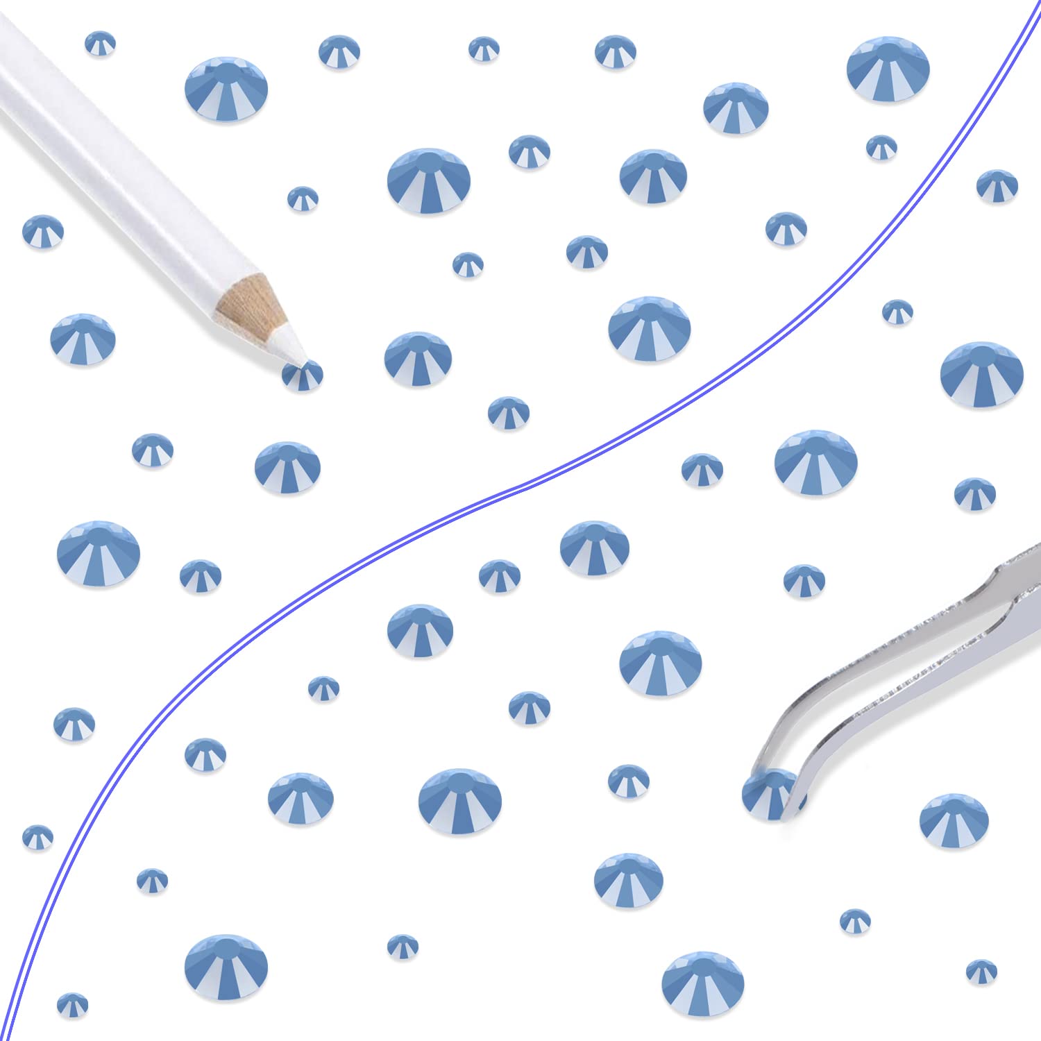 - Approx 6000 pcs of good quality sparkly flatback glass rhinestones with tweezers and 2 picker wax pencils help you easily pick up and set rhinestones in all your jewelry.