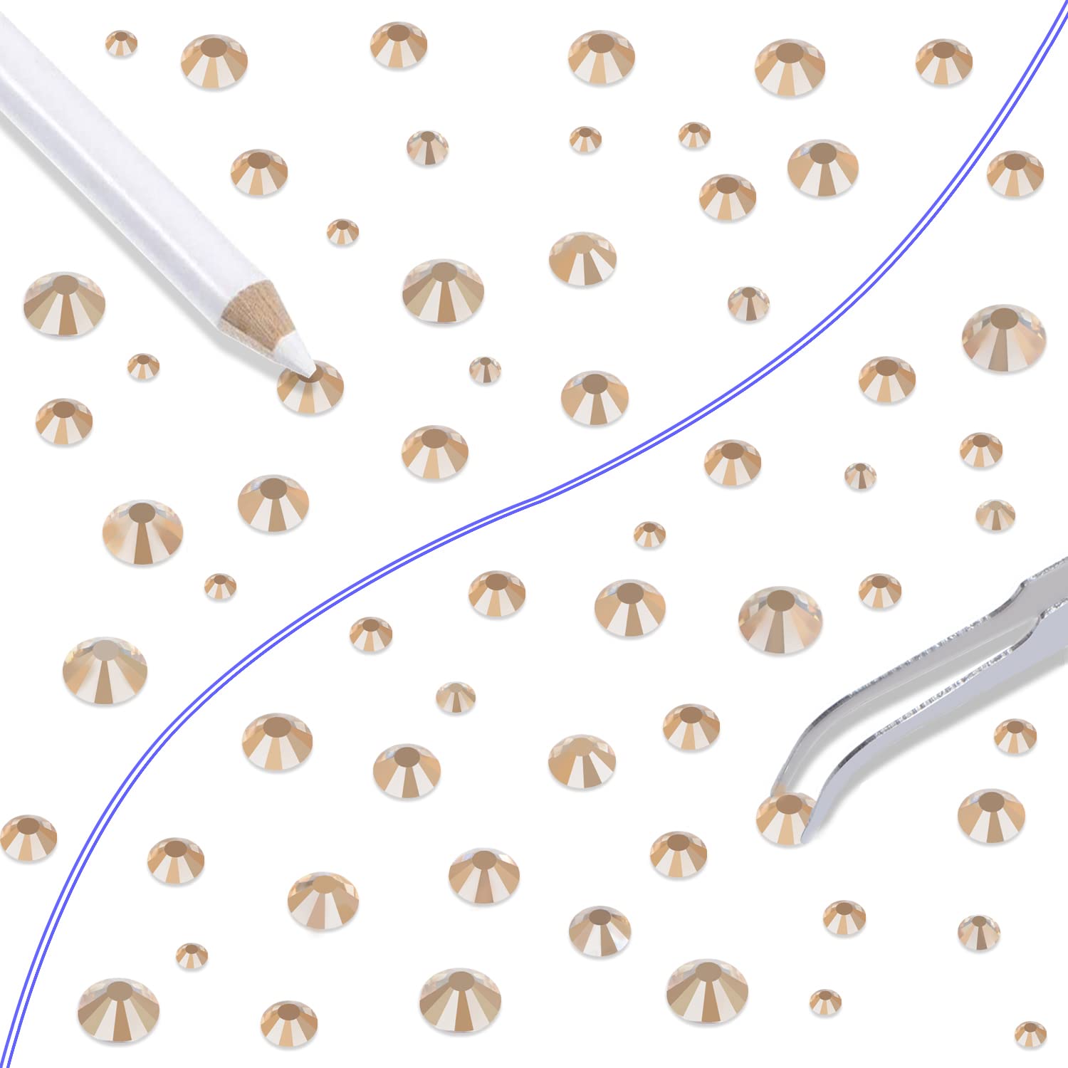 - Approx 6000 pcs of good quality sparkly flatback glass rhinestones with tweezers and 2 picker wax pencils help you easily pick up and set rhinestones in all your jewelry.