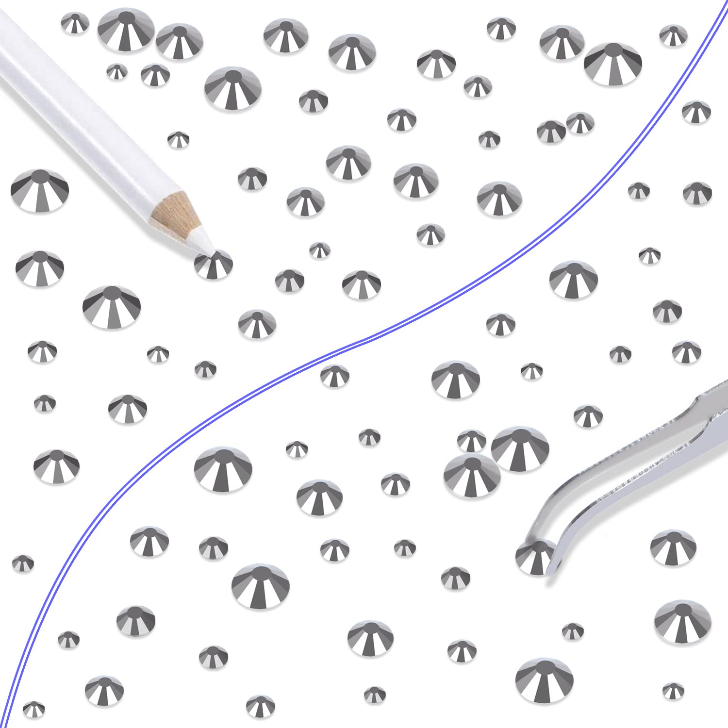 - Approx 6000 pcs of good quality sparkly flatback glass rhinestones with tweezers and 2 picker wax pencils help you easily pick up and set rhinestones in all your jewelry.