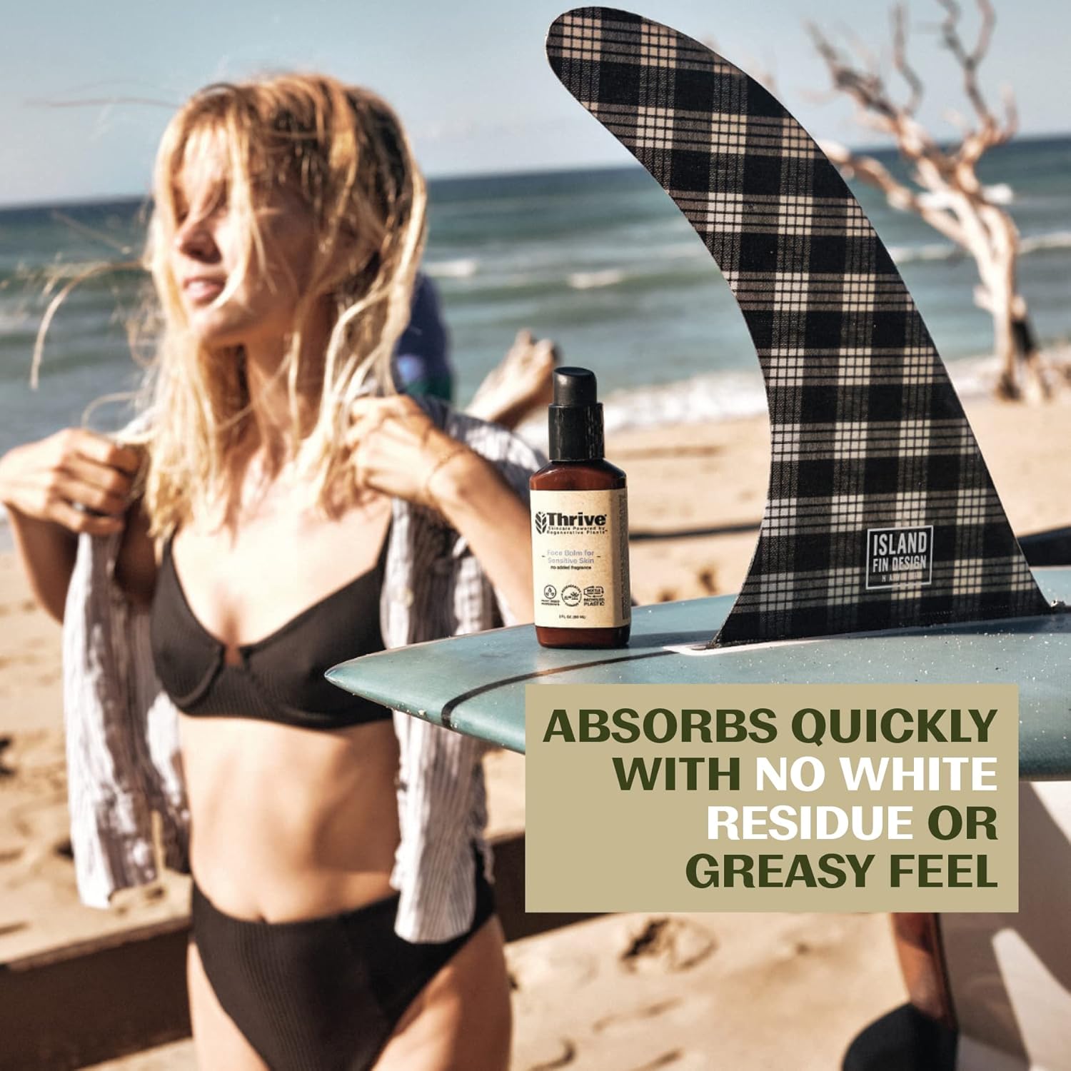 - HIGH QUALITY & SATISFACTION GUARANTEED – Sensitive skin sunscreen with no chemical sunscreen filters, benzene free, cruelty-free, vegan, PABA-free, GMO-free, paraben-free, no synthetic colors or unhealthy ingredients. We want you to absolutely love your Thrive and offer a 100% satisfaction policy. If you don’t love your Thrive, let us know and we will completely refund your purchase.