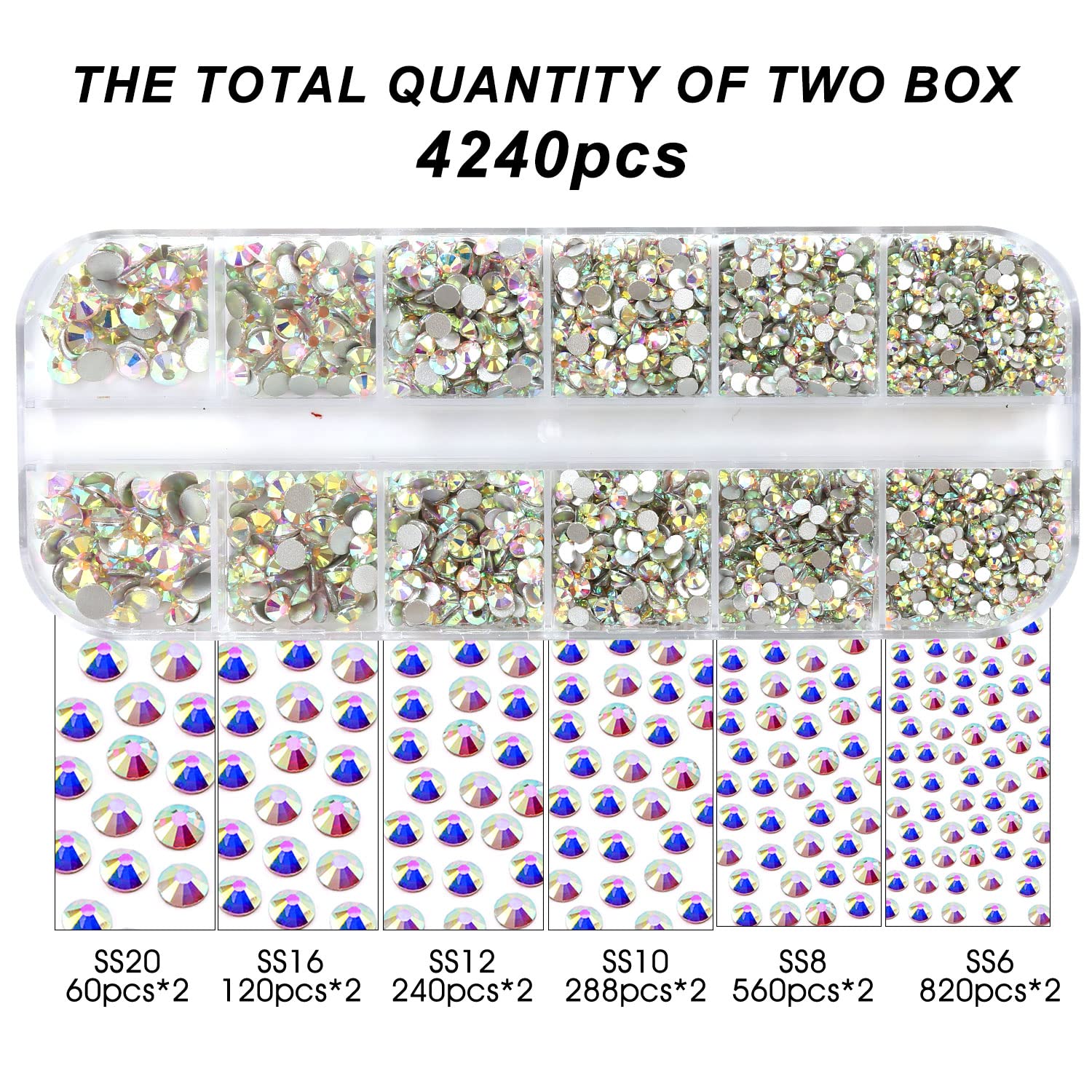 4240Pcs Flatback Crystal Ab Rhinestones Glass Gems for Nail Art Jewels Makeup Tumblers Shiny Round with Tweezers and Picking Pen (SS6~SS20 Set)
