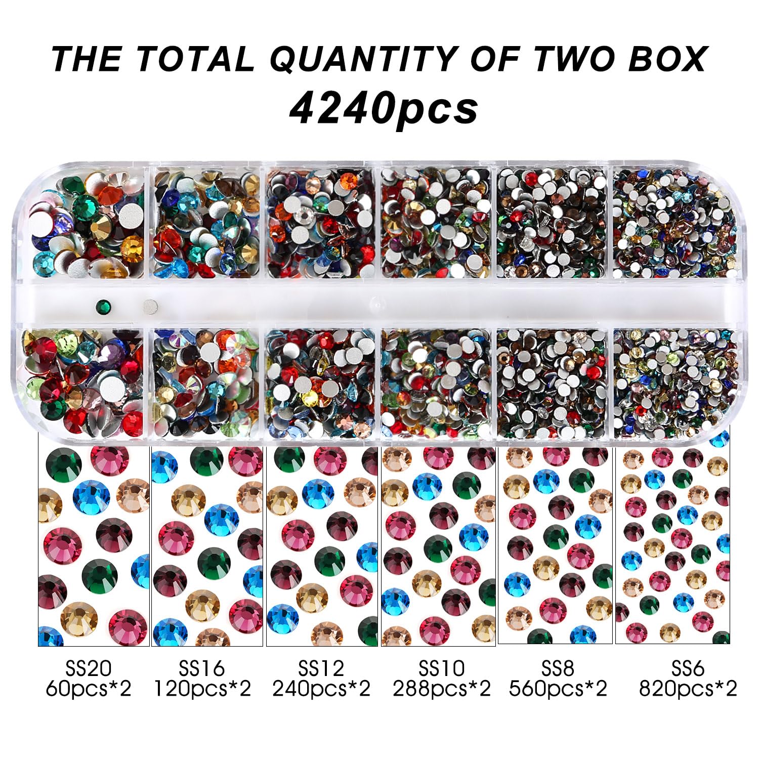 4240Pcs Flatback Multicolor Rhinestones Glass Crystal Gems for Nail Art Face Jewels Round with Tweezers and Picking Pen (SS6~SS20 Set)
