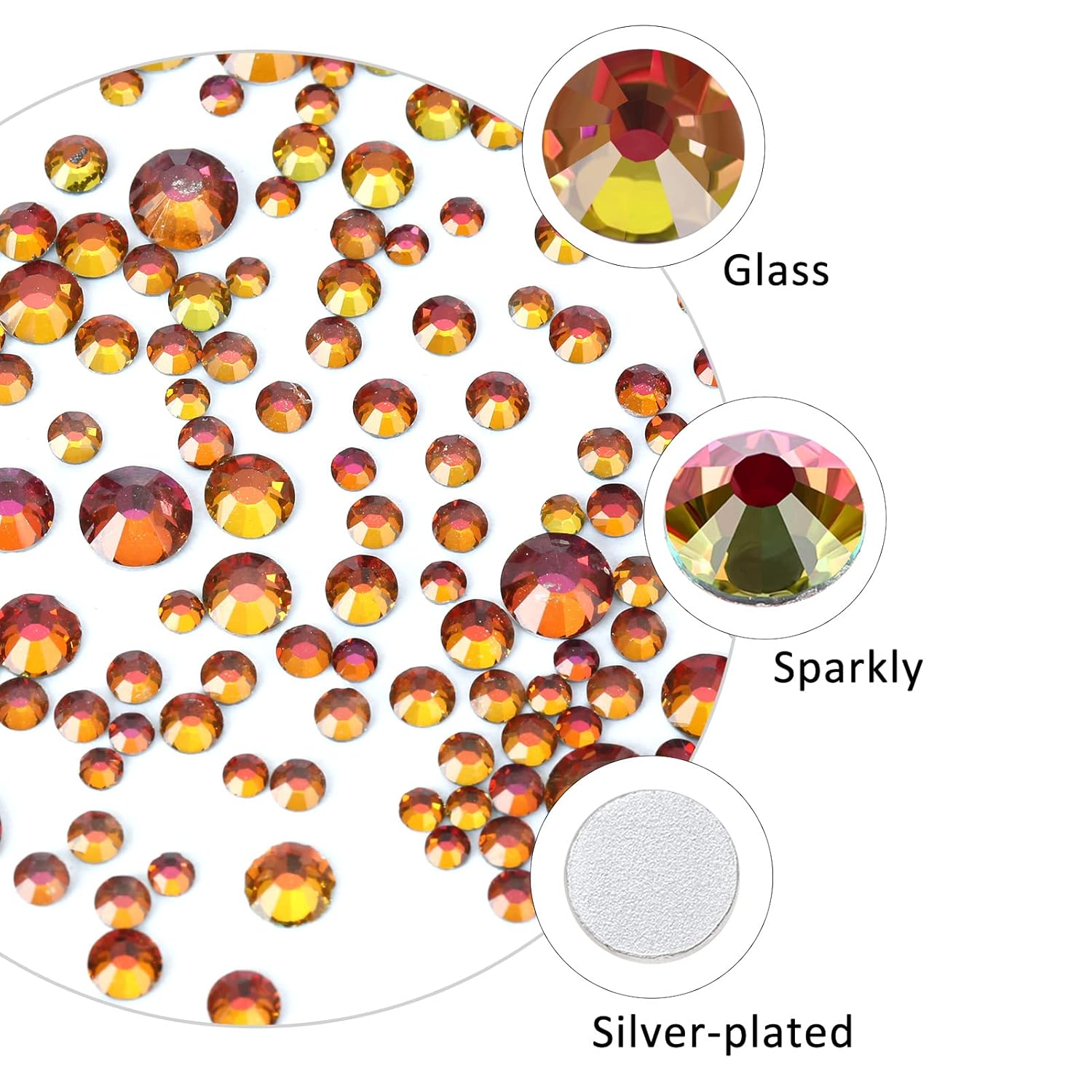 - 💎Material: glass/artificial crystal. The surface has a high-precision section, multi-faceted cutting, high brightness and high gloss. Flat bottom, round shape, silver plated back, non-allergenic. The color runs through the rhinestones without fading.