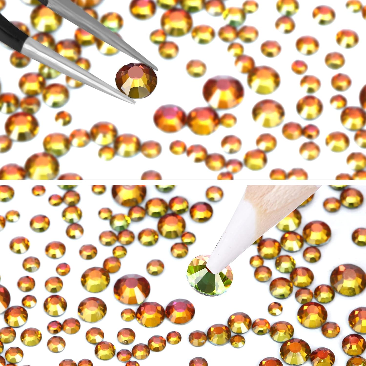 - 💎How to use: Tweezers and Picking Pen gem picker to pick rhinestones, there is no glue on the bottom of the rhinestones, additional nail gel is required, or other professional makeup or nail glue.