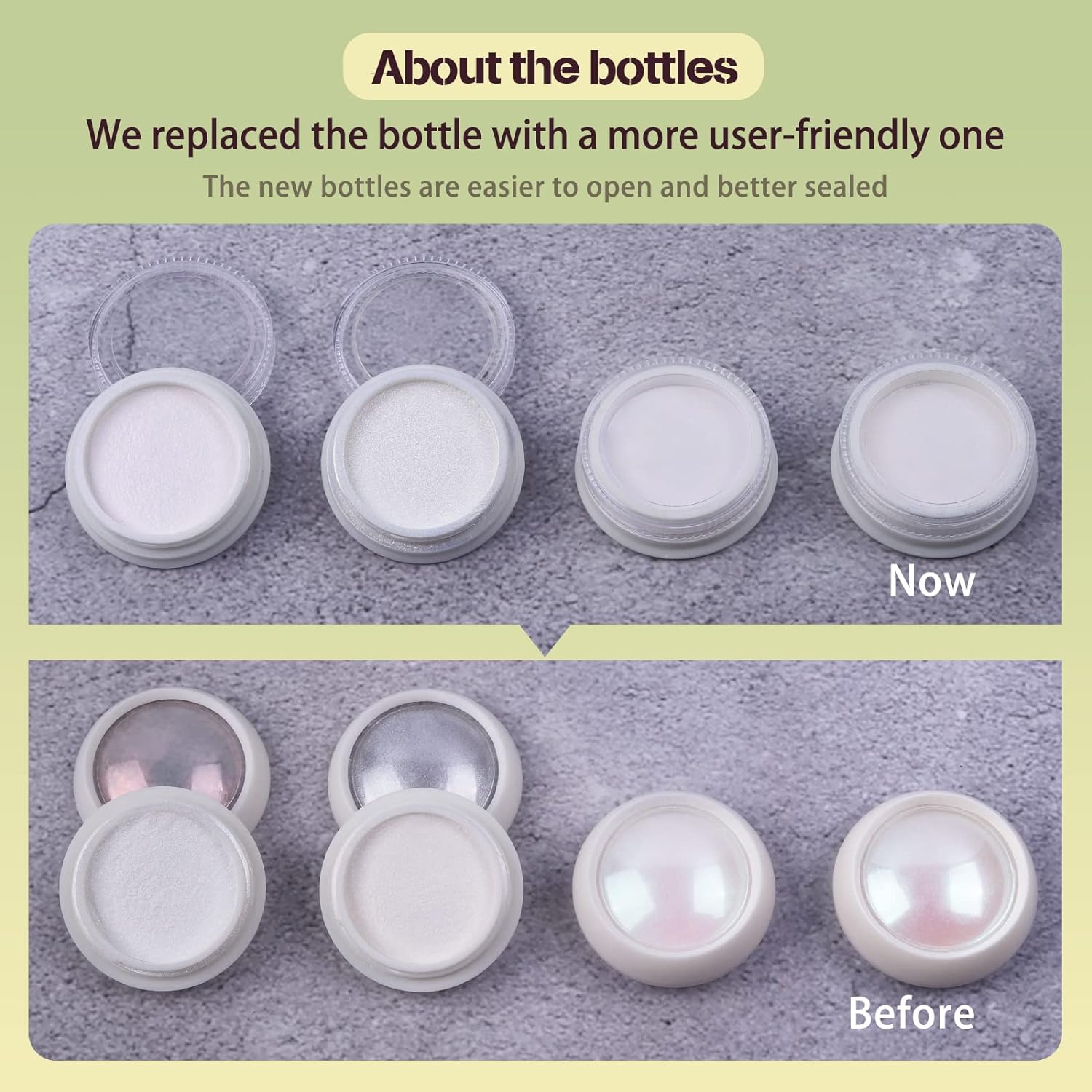- PACKAGE CONTENTS: 4pcs(each 1gram) chrome nail mirror white pearl pigment powders. It needs to be used with gel nail polish and no wipe top coat.