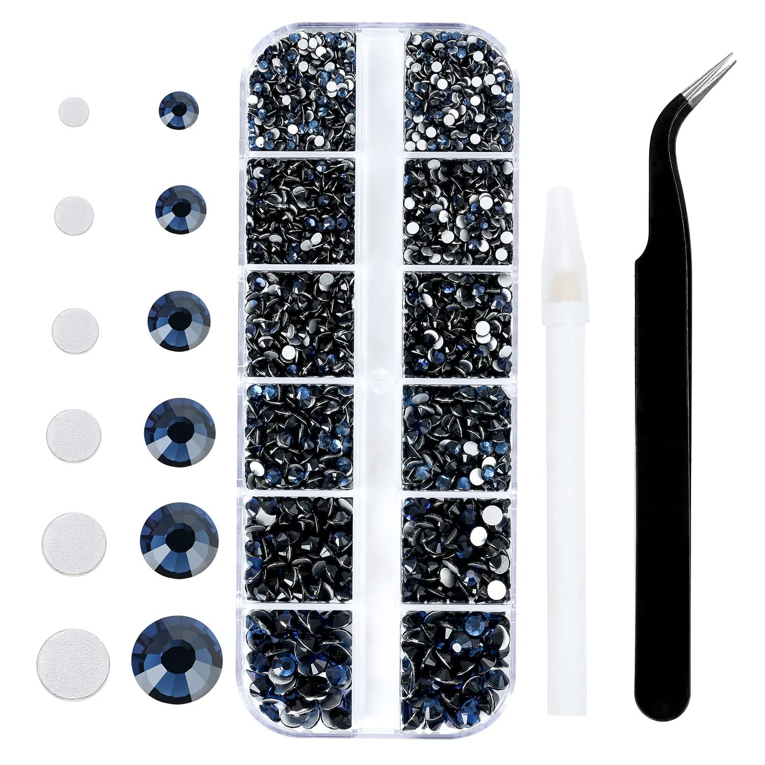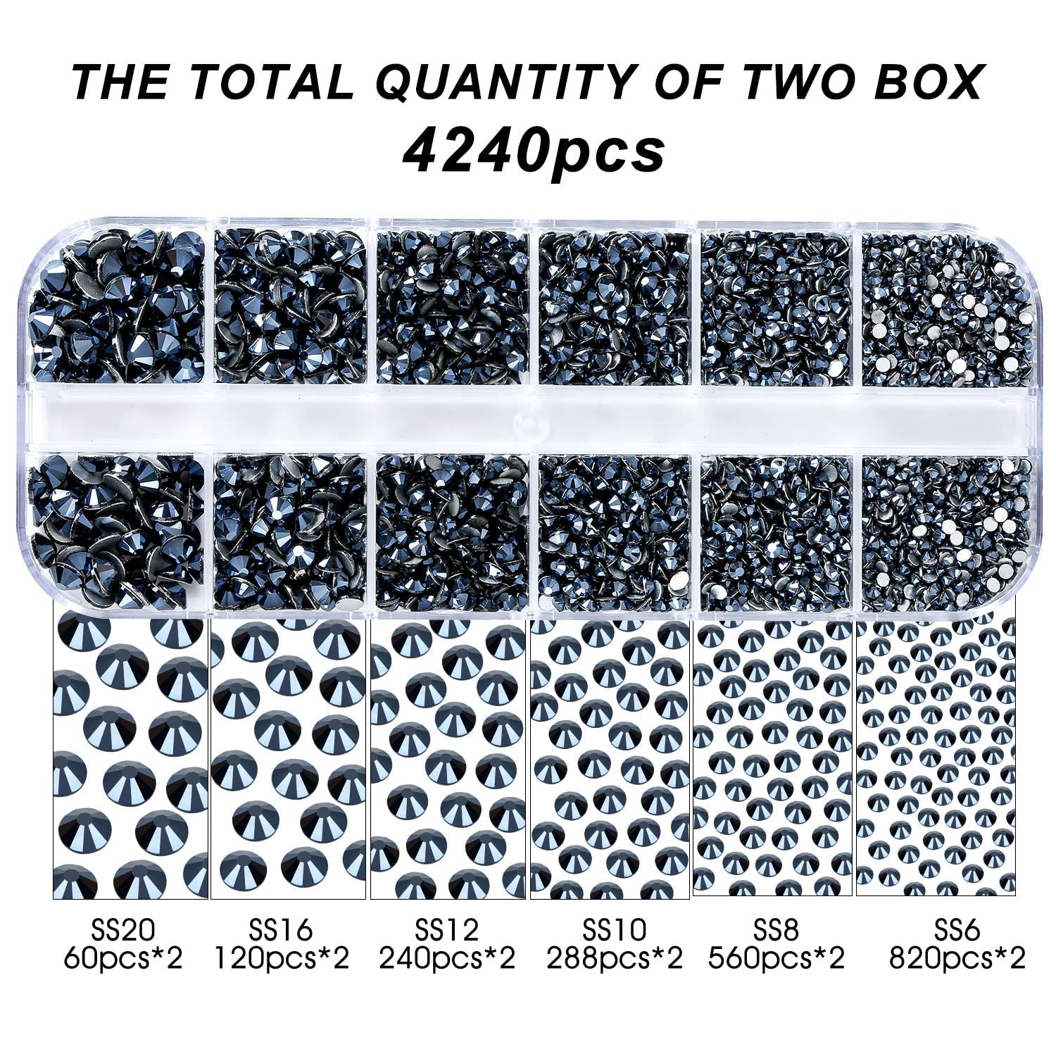 4240Pcs Shiny Black Flatback Rhinestones 6 Sizes Crystal Diamonds for Nail Art Crafts Clothes Shoes with Tweezers and Picking Pen