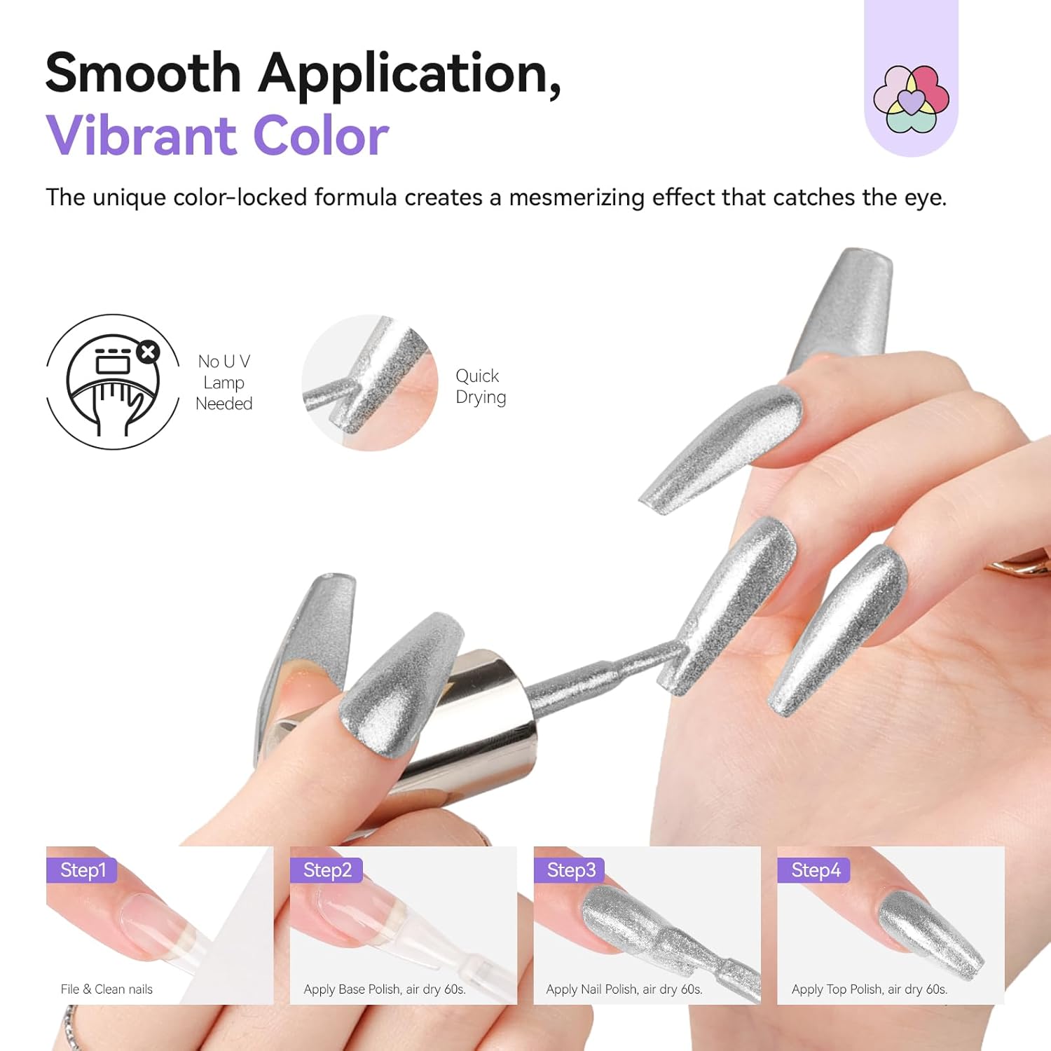 - Pro Tips: Thoroughly cleanse nails and remove oils before application. Apply thin coats of air-dry polish, allowing complete drying between layers to prevent chipping. Avoid water contact for 4+ hours post-application.