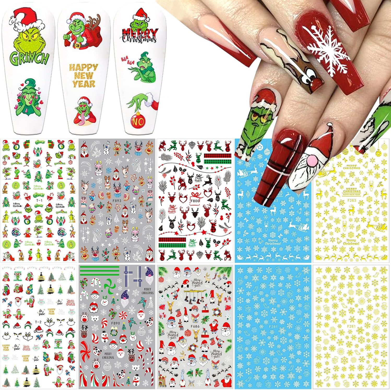 - ăWidely Usageă- Winter xmas nail stickers are not only suitable for finger nail and toe nail manicures, You can also use them to decorate your cell phone's case, books, gift card, photo frame, DIY crafts etc. Perfect for home use and nail salon.